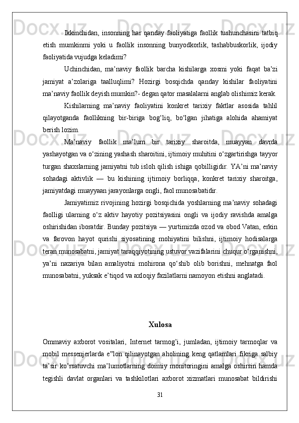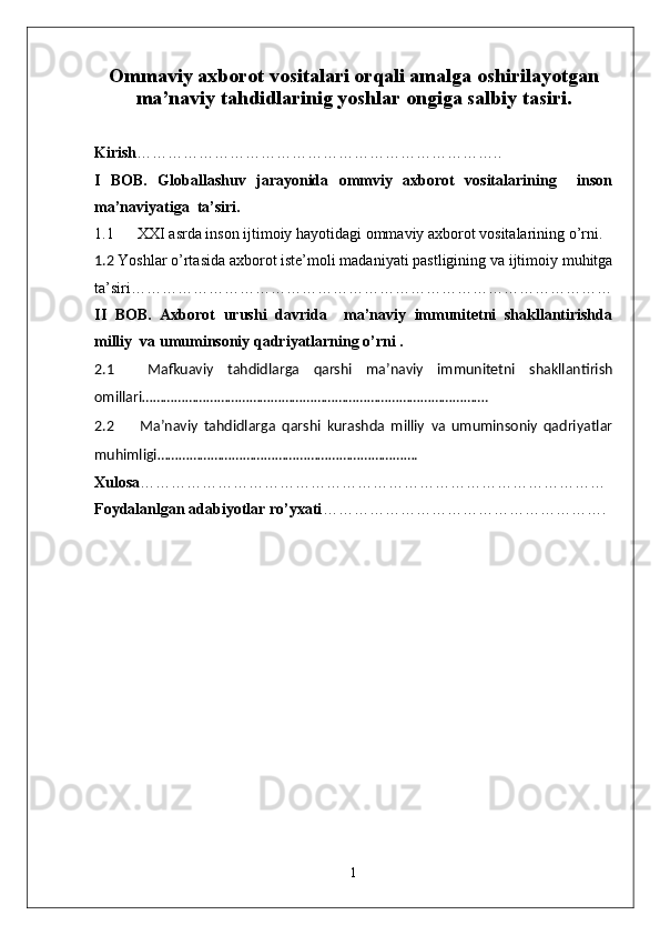 Ommaviy axborot vositalari orqali amalga oshirilayotgan ma’naviy tahdidlarinig yoshlar ongiga salbiy tasiri