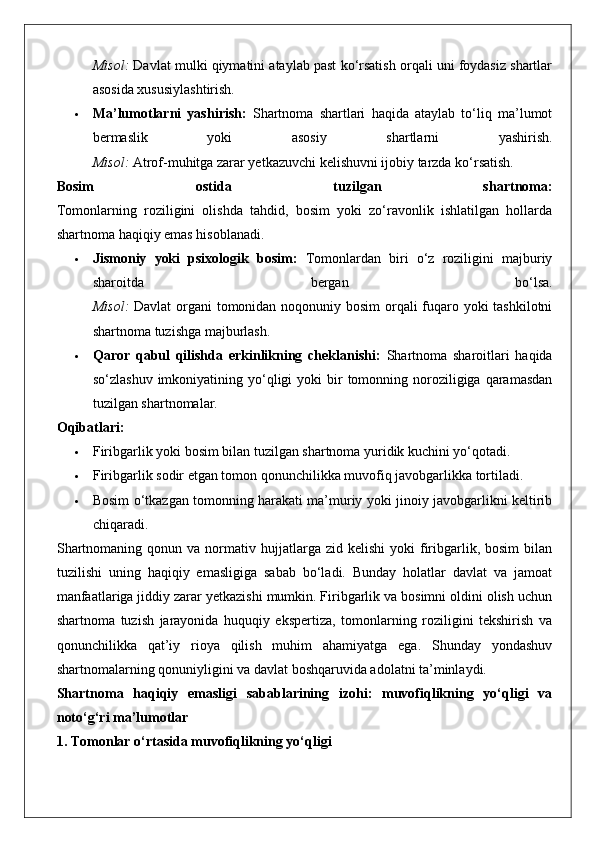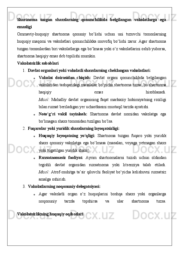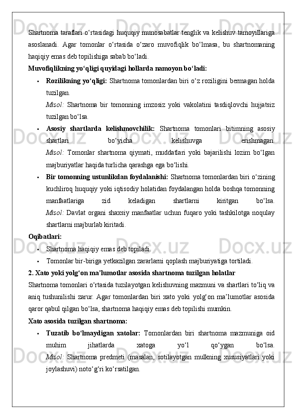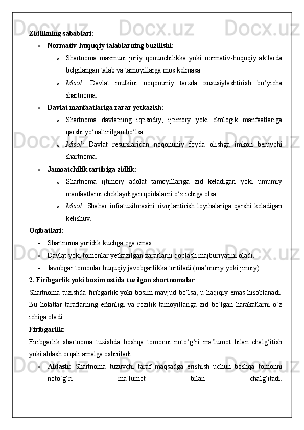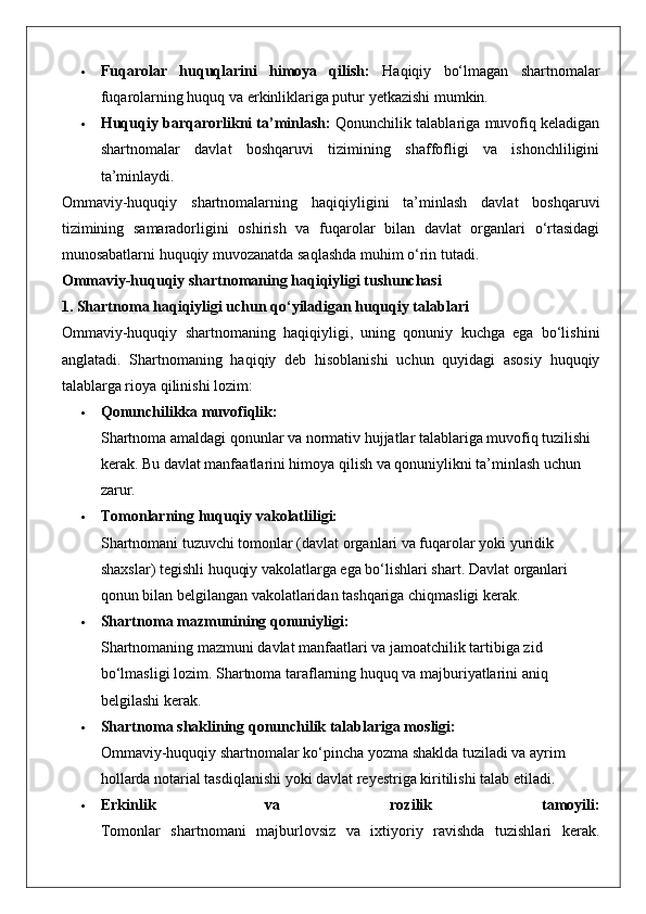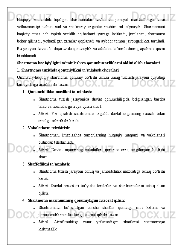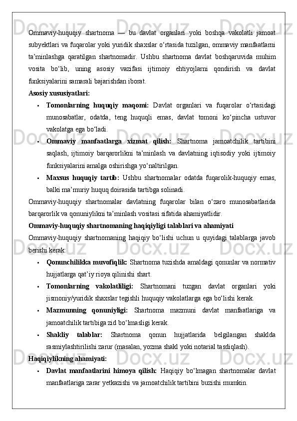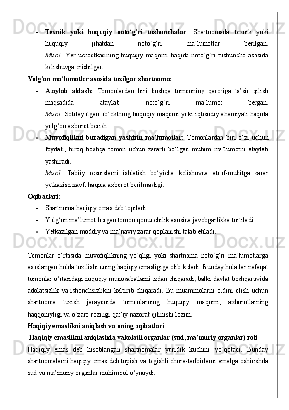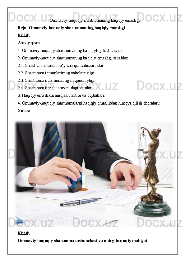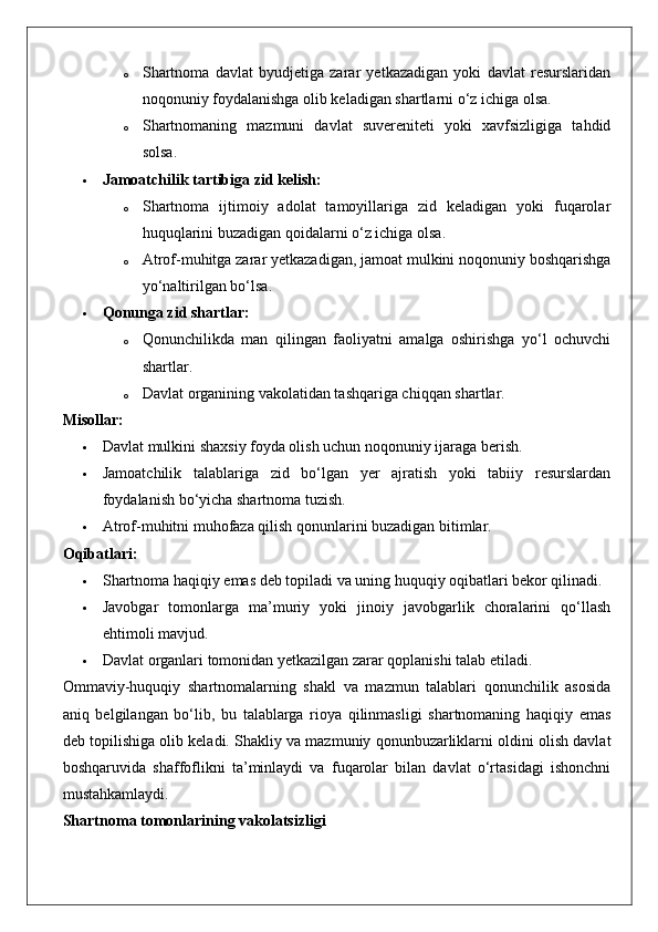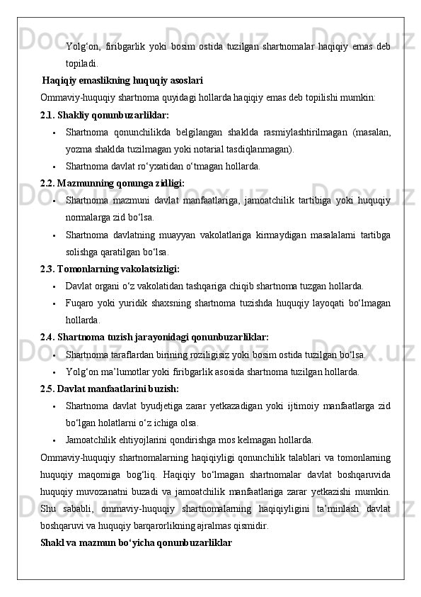 Ommaviy-huquqiy shartnomaning haqiqiy emasligi