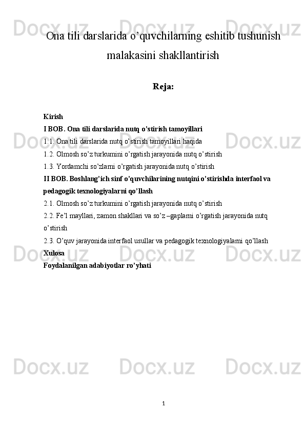 1.1. Ona tili darslarida nutq o’stirish tamoyillari haqida ma’lumot