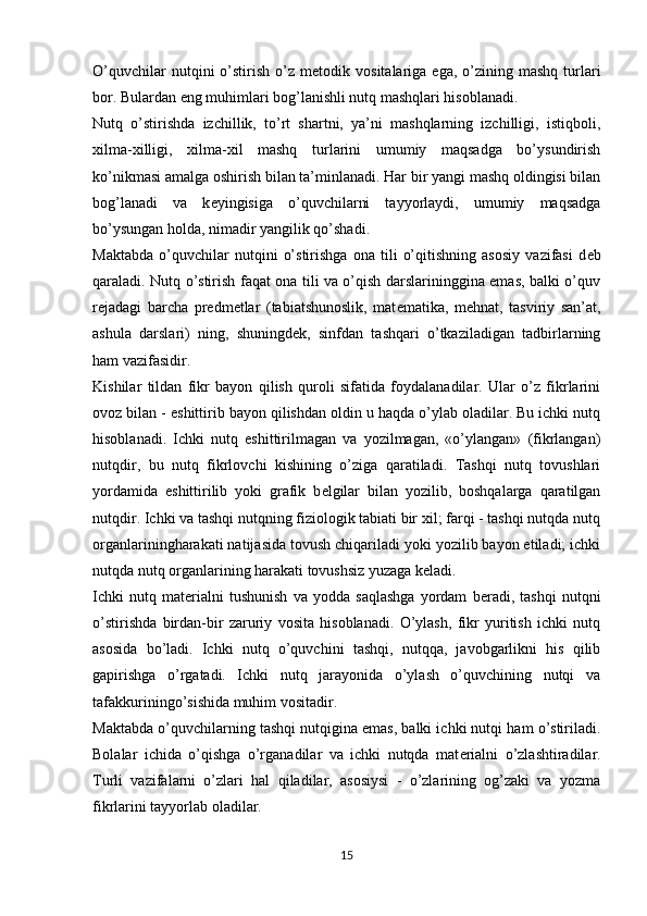 Nutq   faoliyati   uchun,   shuningdеk,   o’quvchilar   nutqini   o’stirish   uchun   bir   nеcha