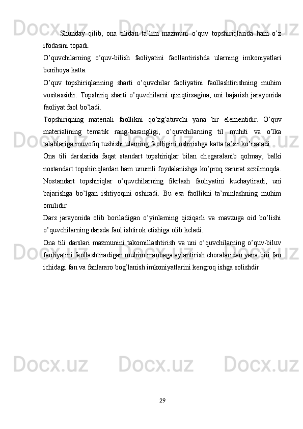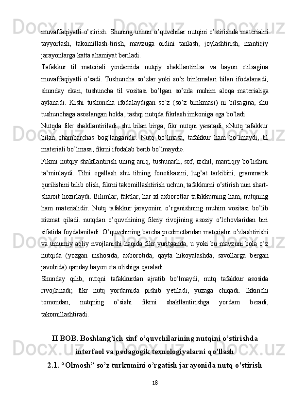 qilish   va   shu   asosida   o’quvchilarni   fikrlash   qobiliyatini   va   nutqini   o’stirish