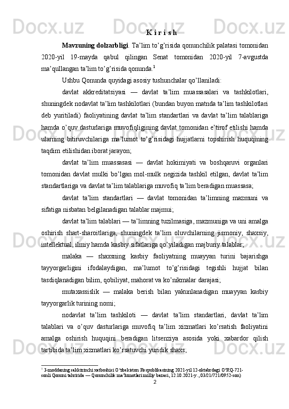 ma’qullangan ta’lim to’g’risida qonunda. 1