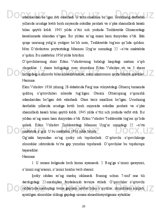 asosida   yozishi   mumkin”   deydi.   U   7   sinfda   rioyat,   tasvir   va   ilmiy   insholar