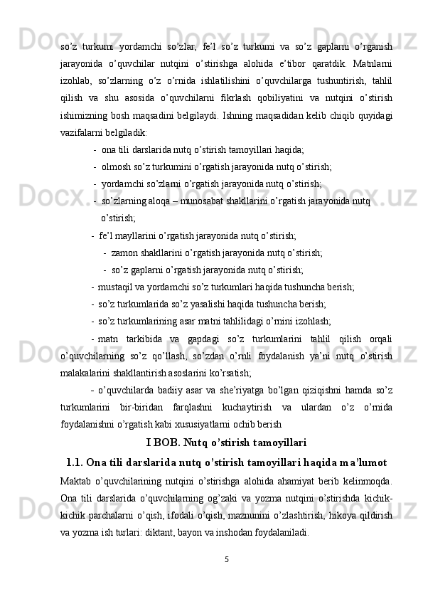 tavsiyalar   yaratilgan,   xolos.   Shu   sababli   Ona   tili   «   darslarida   o’quvchilar   nutqini