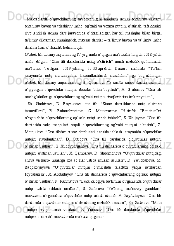 jarayonida   o’quvchilar   nutqini   o’stirishga   alohida   e’tibor   qaratdik.   Matnlarni