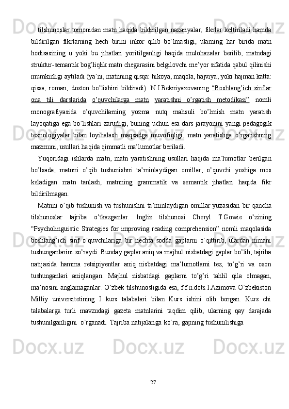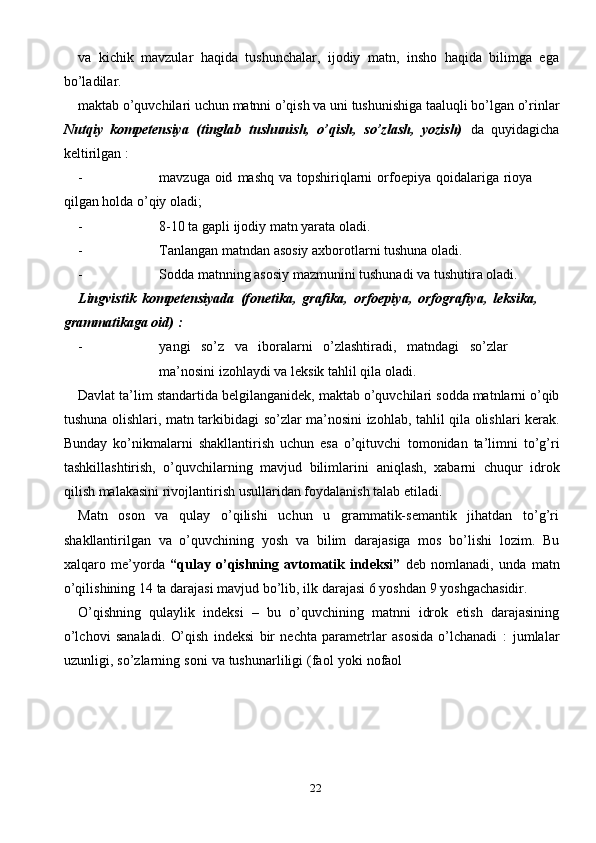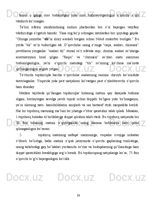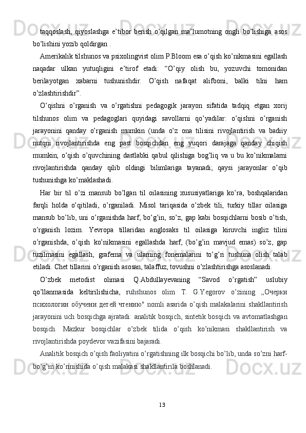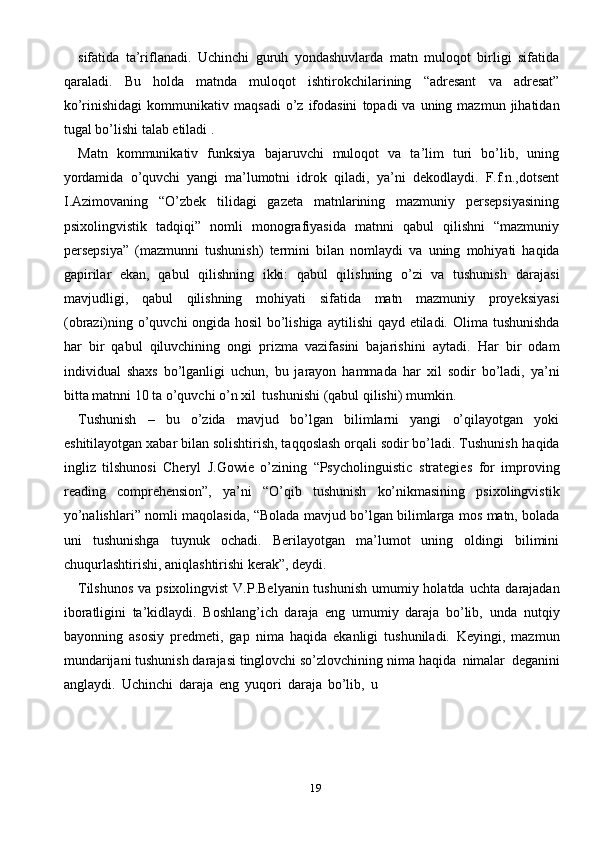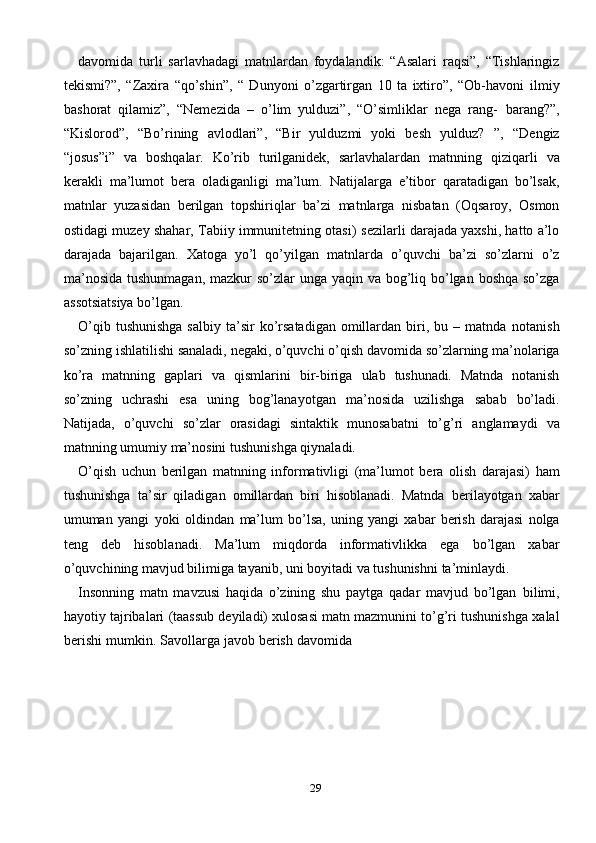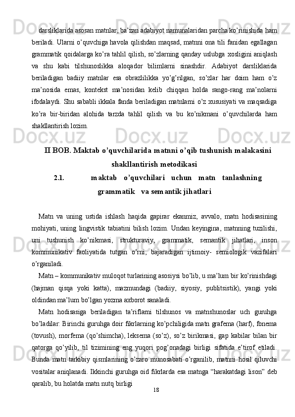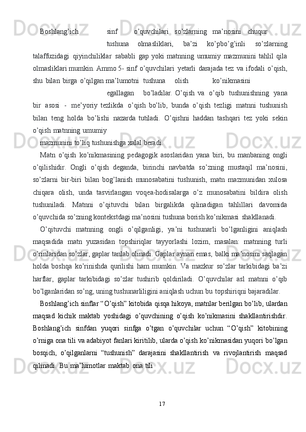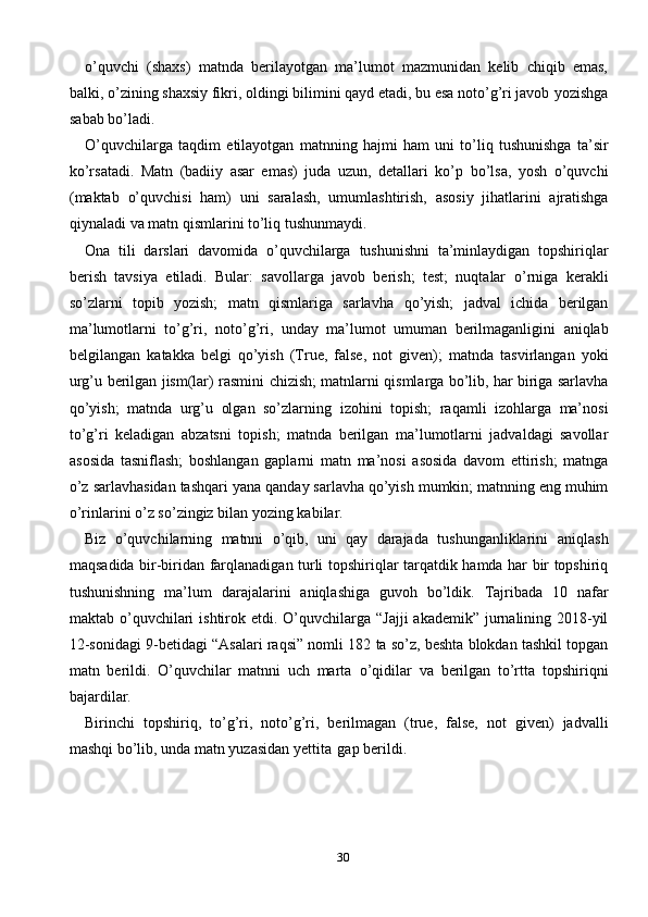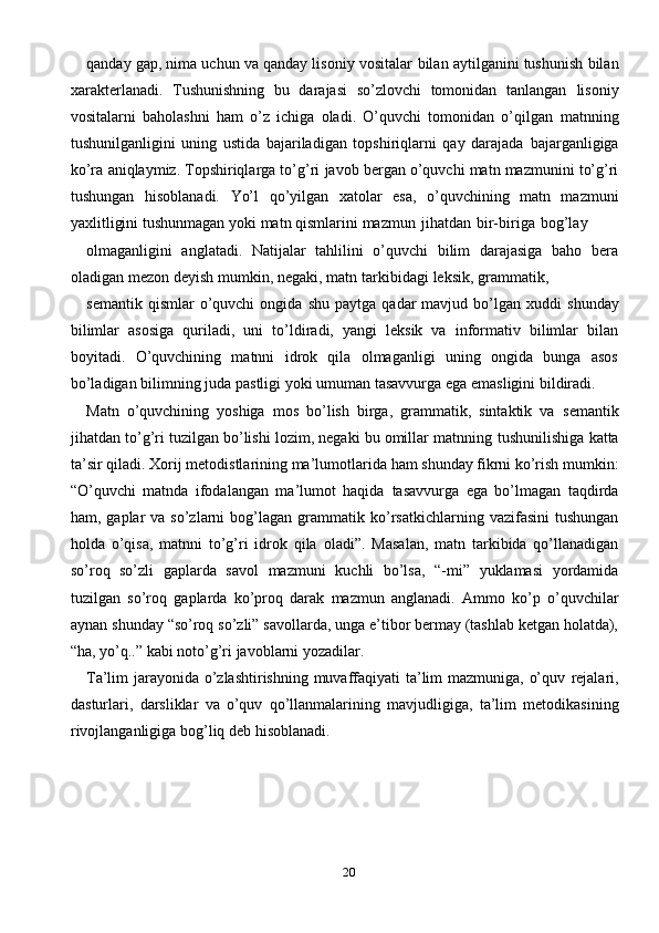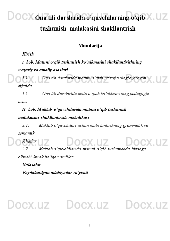 Ona tili darslarida o’quvchilarning o’qib tushunish malakasini shakllantrish