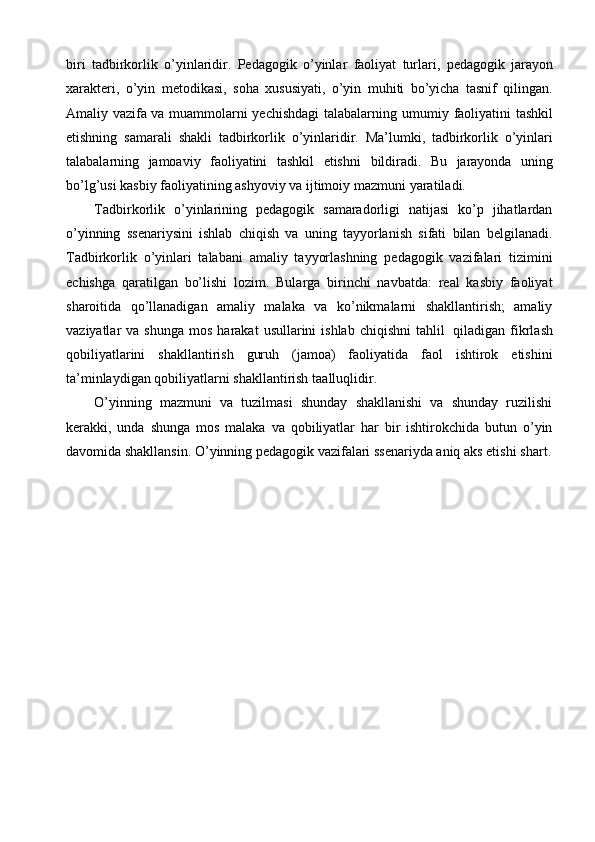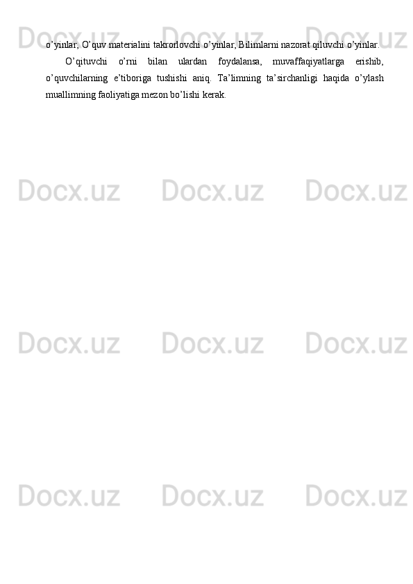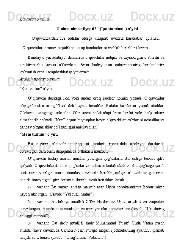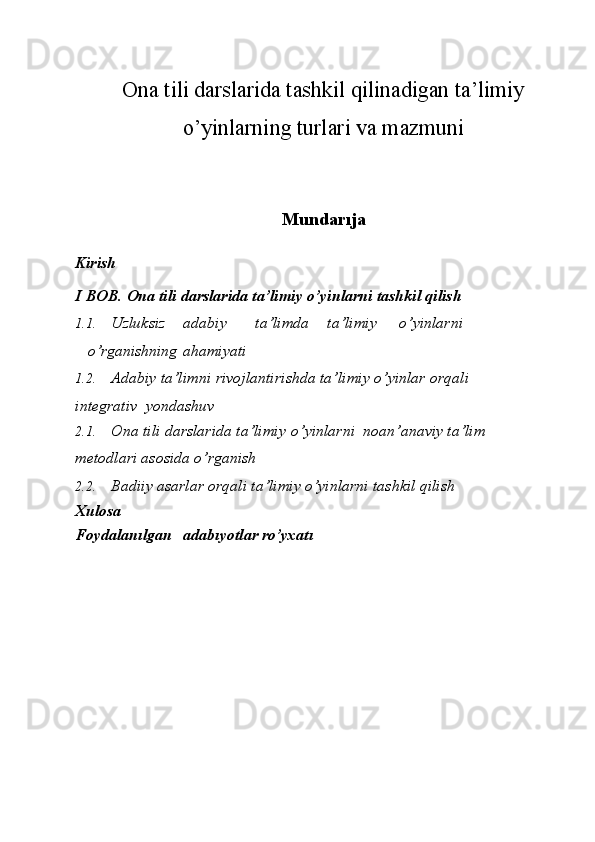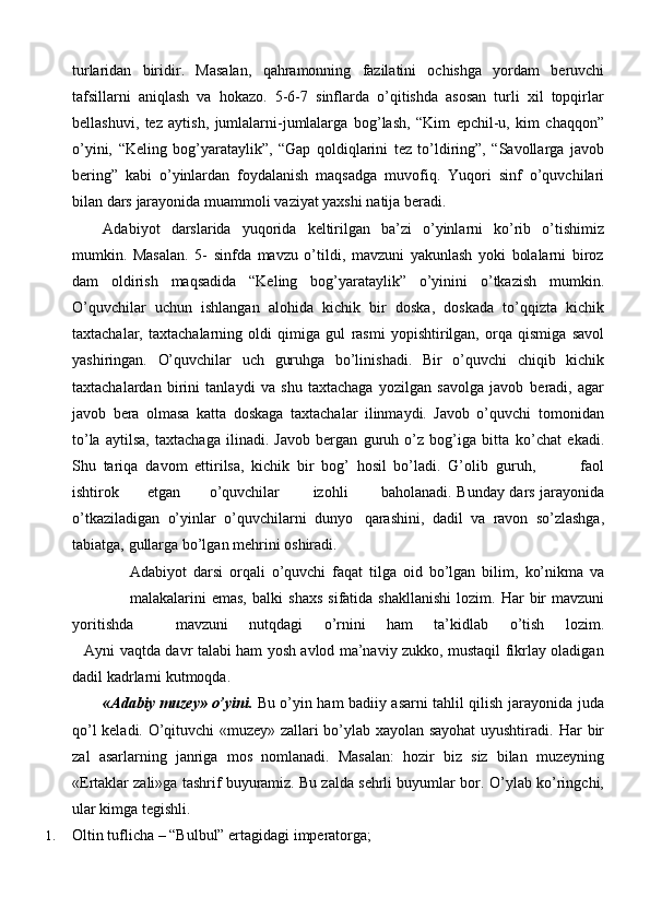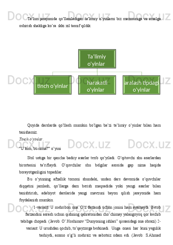 Ona tili darslarida tashkil qilinadigan ta’limiy o’yinlarning turlari va mazmuni