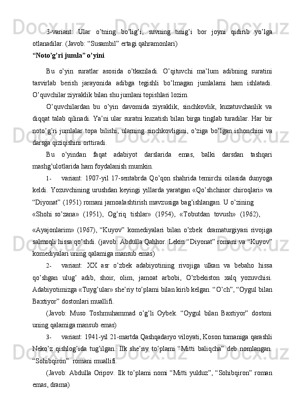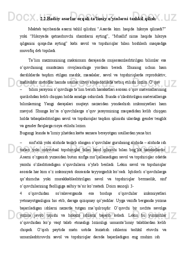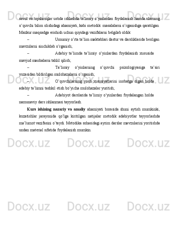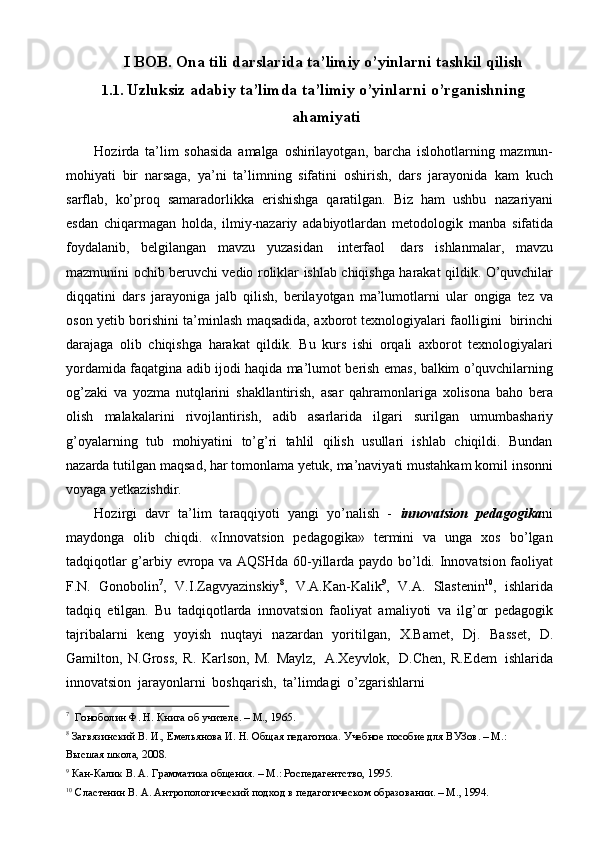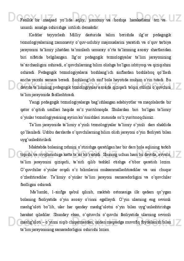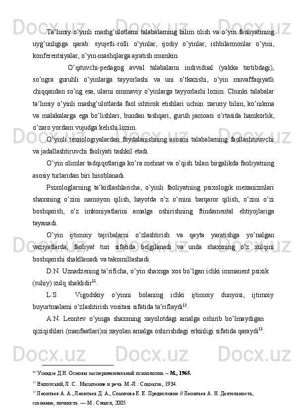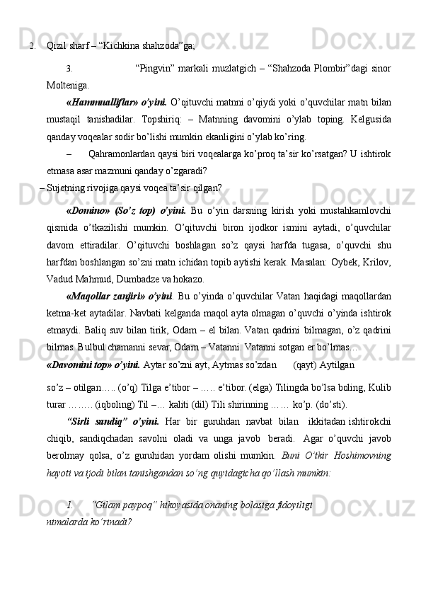 Ona tili darslarida tashkil qilinadigan ta’limiy o’yinlarning turlari va mazmuni