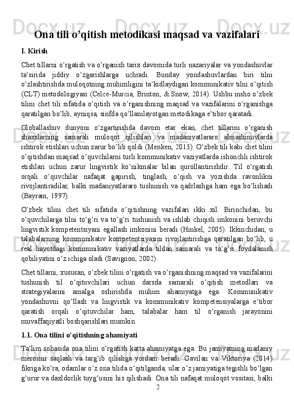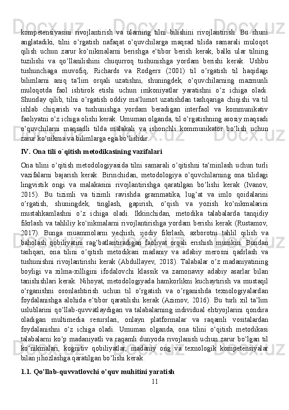 Ona tili o’qitish metodikasi maqsad va vazifalari