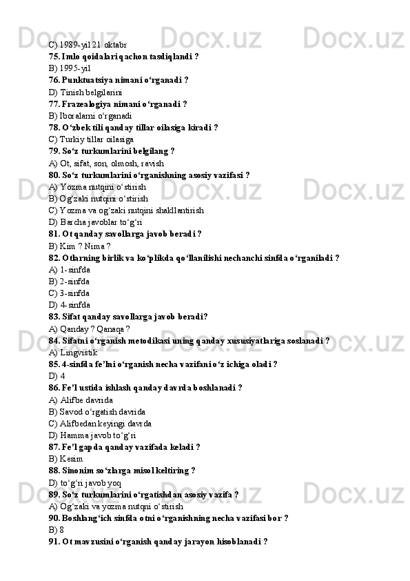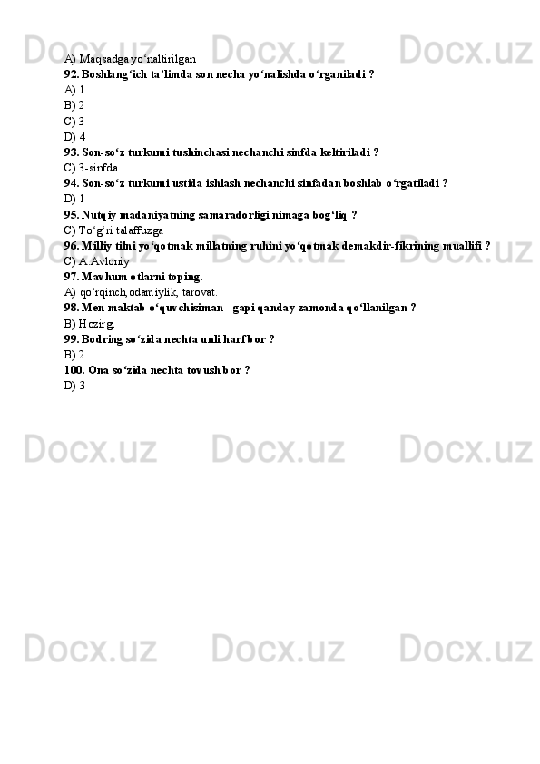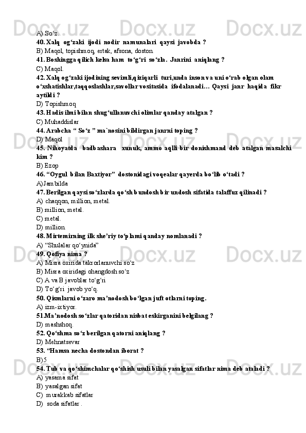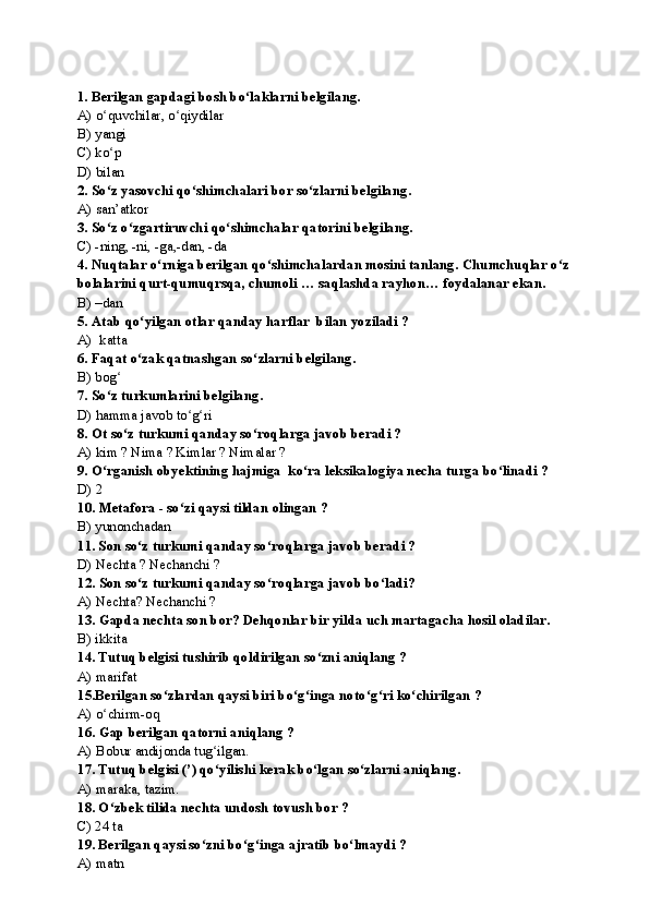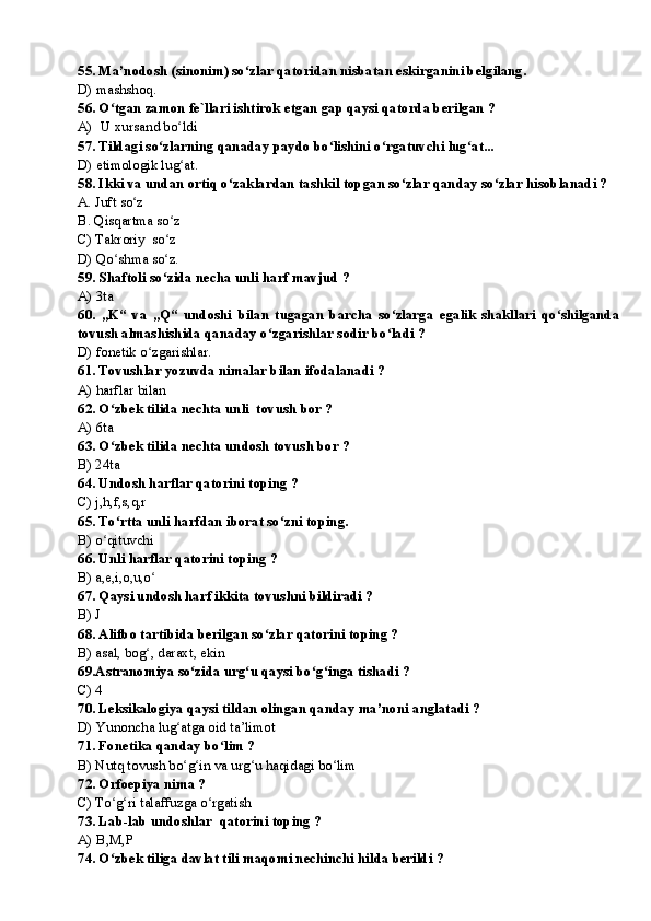 Ona tili savodxonlik SAVOLLARI VATO'G'RI JAVOBLARI
