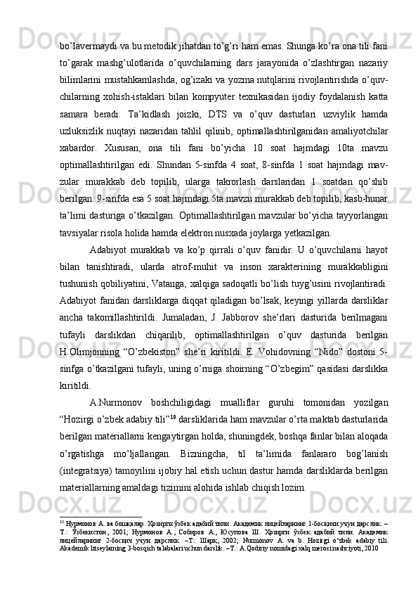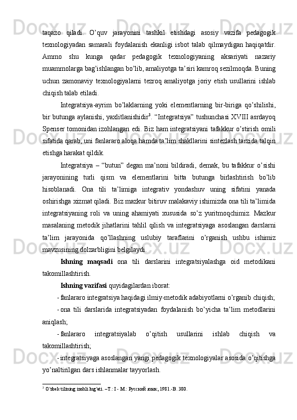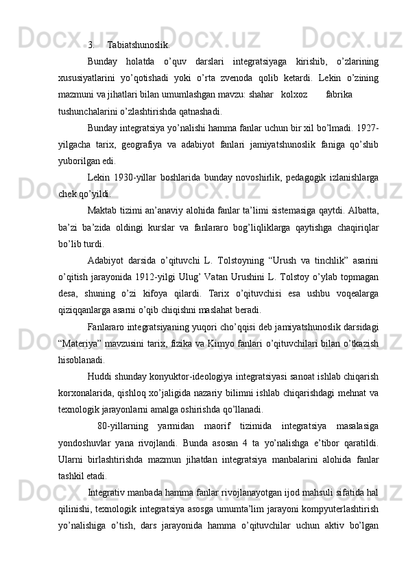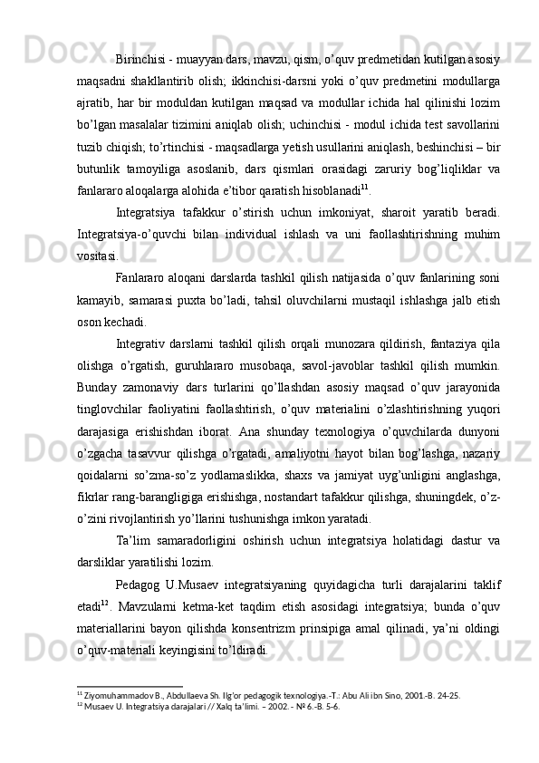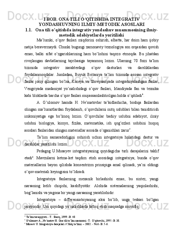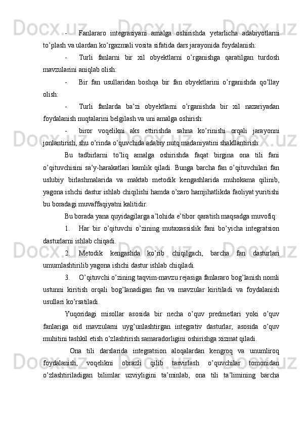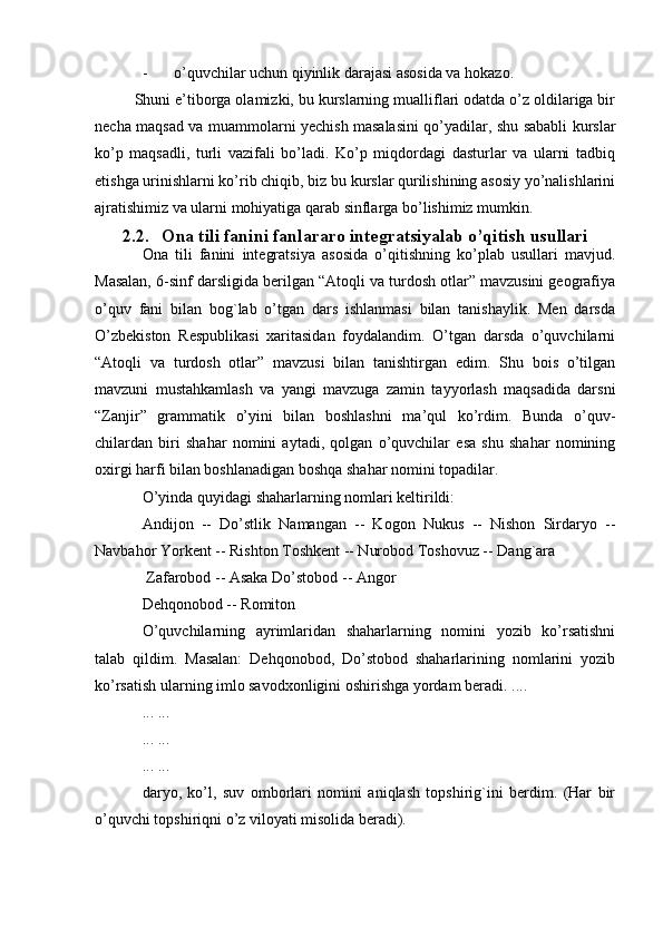 Ona tilidan integratsiyalashgan darslarni tashkil qilish metodikasi
