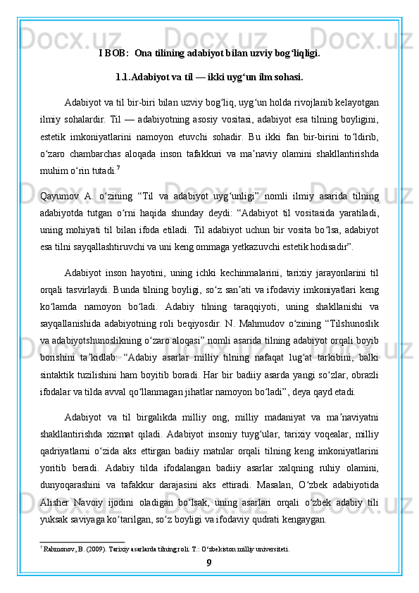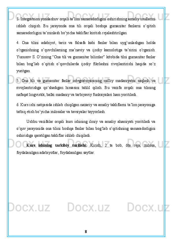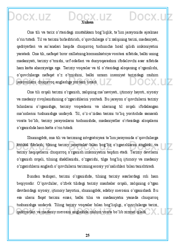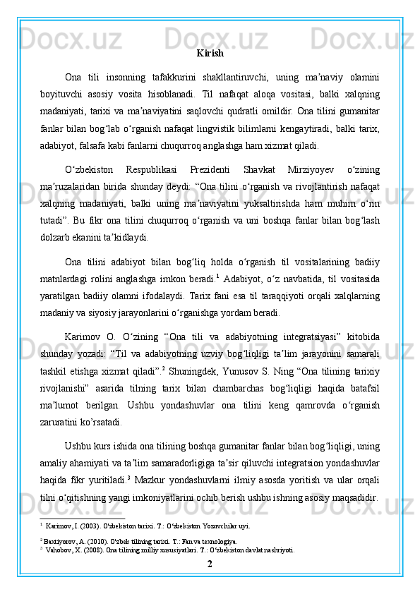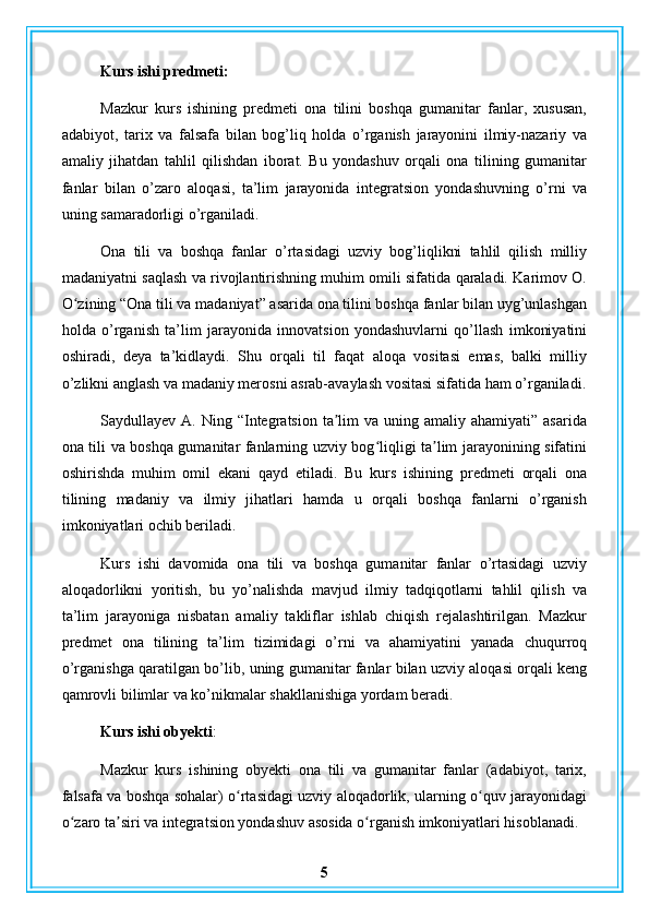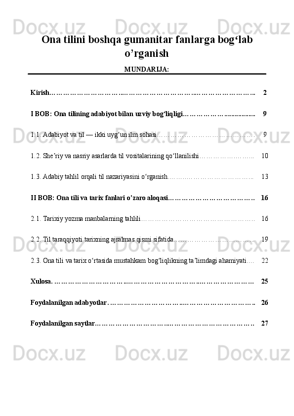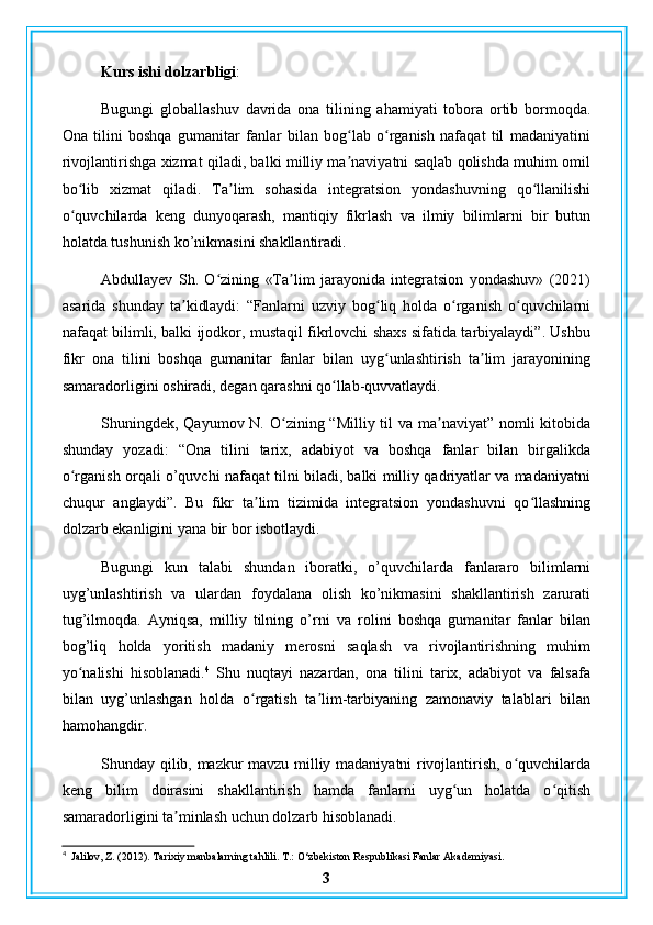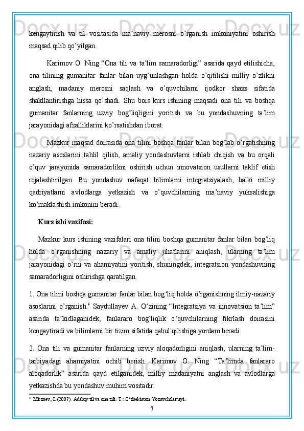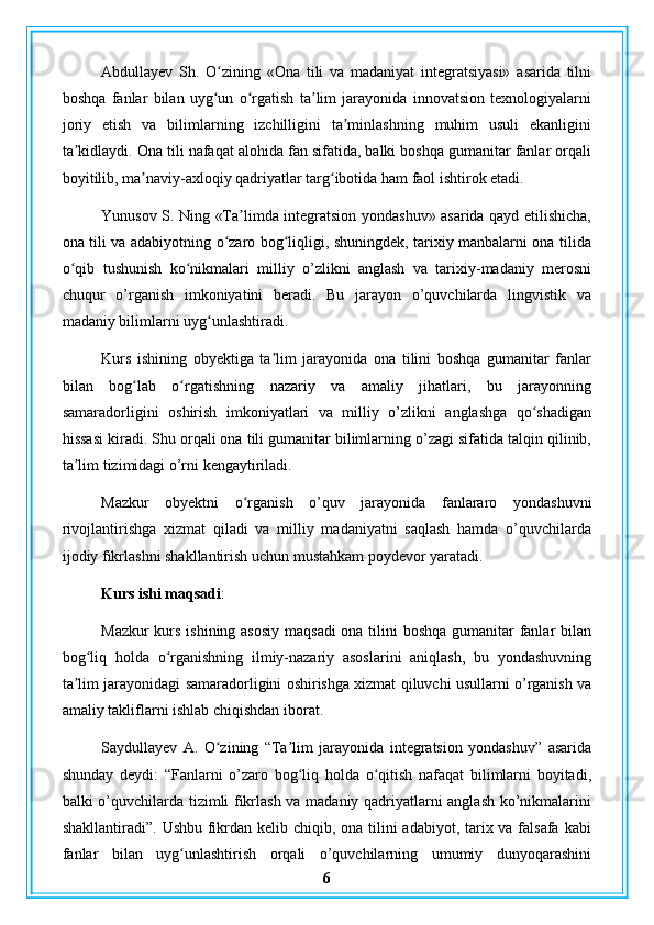 Ona tilini boshqa gumanitar fanlarga bogʻlab o’rganish