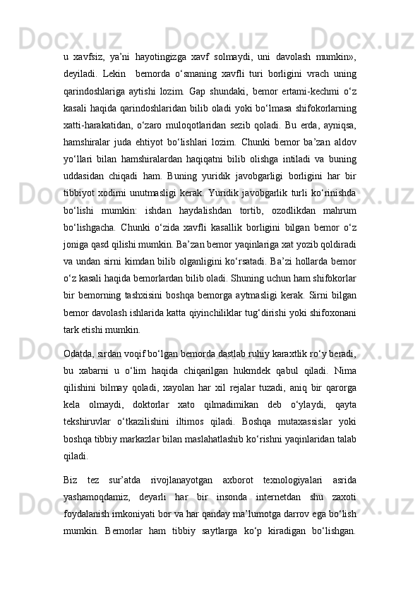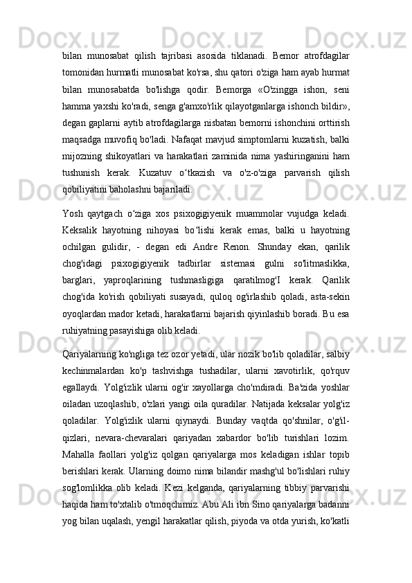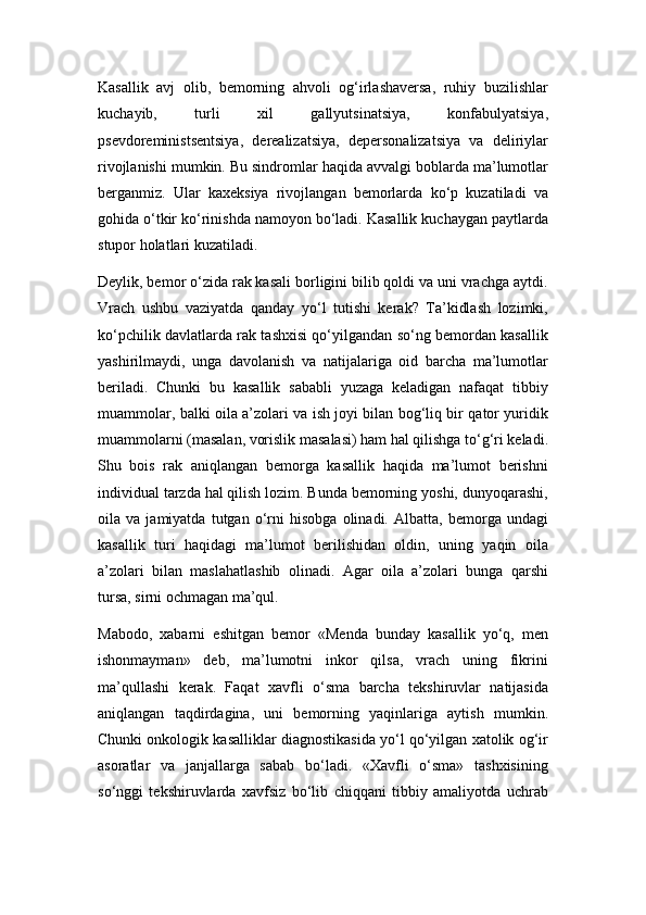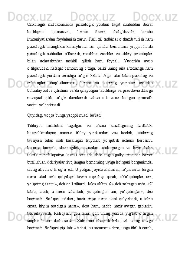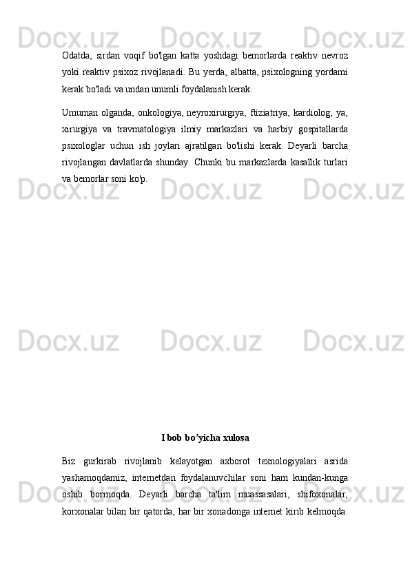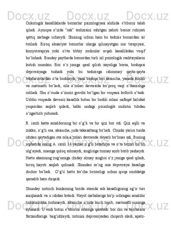 1.1. Onkologikkasalliklarda bеmorlar psixologiyasi.
