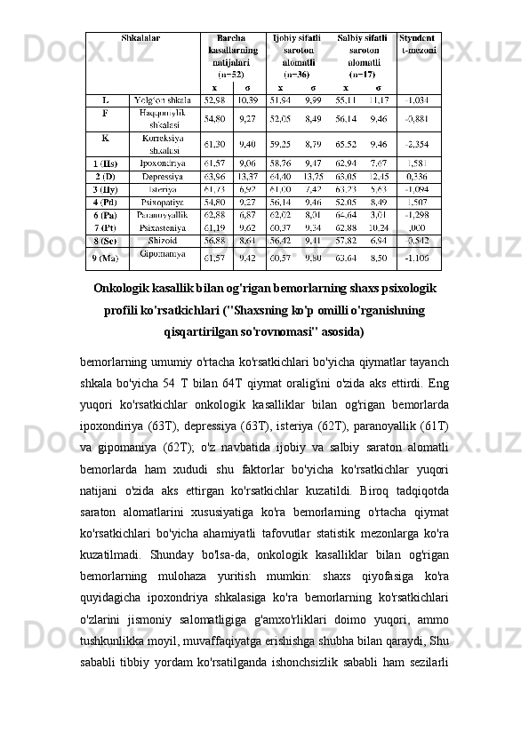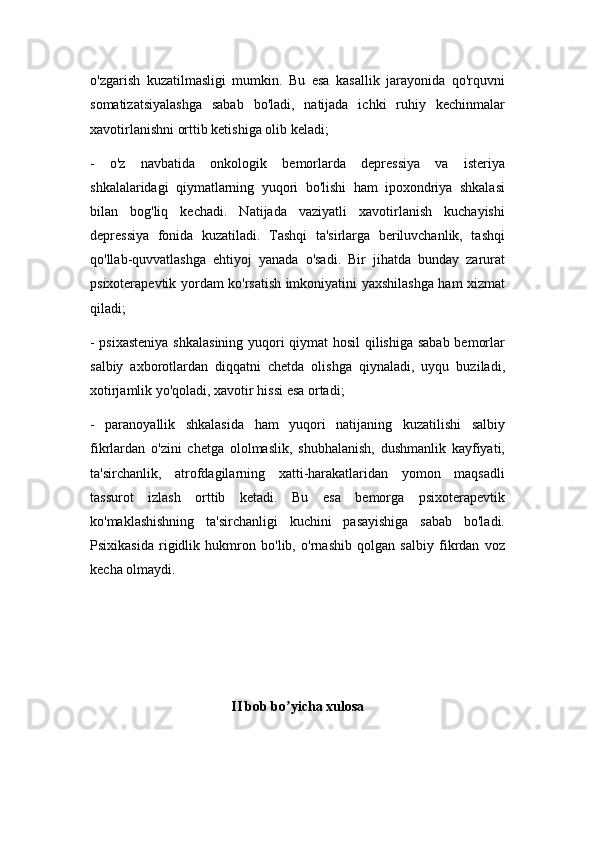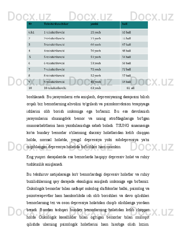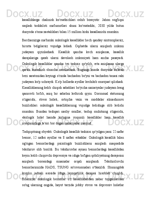II BOB. ONKOLOGIK KASALLIK BILAN KASALLANGAN BEMORLARDAGI PSIXOLOGIK O'ZGARISHLAR VA ULARDAGI DEPRESSIV HOLATNI BAHOLASH.