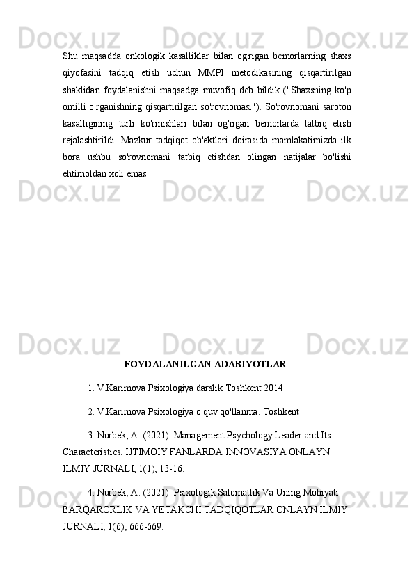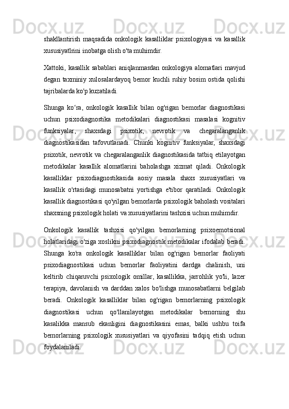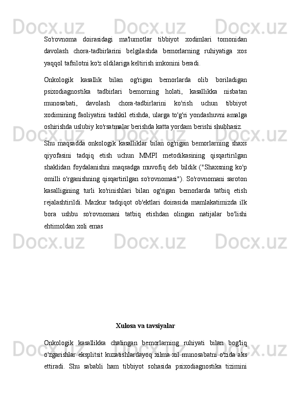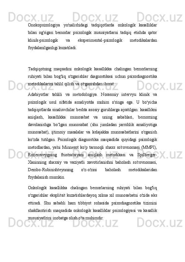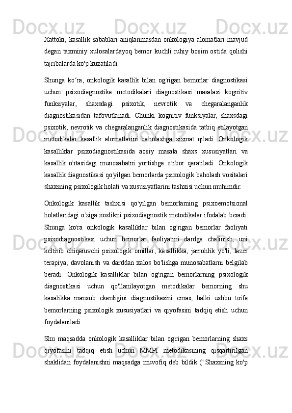 2.2. Onkologikkasalliklarda psixologik diagnostika metodikalarini tatbiq etish xususiyatlari.
