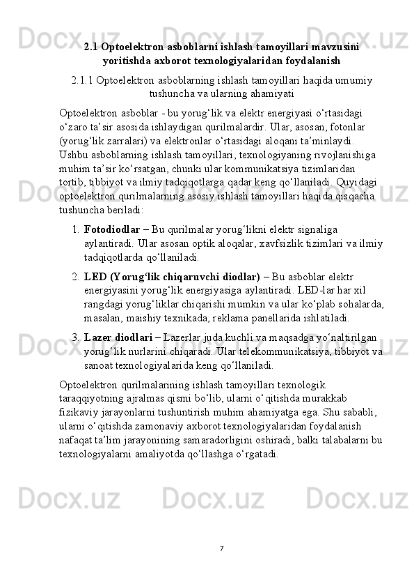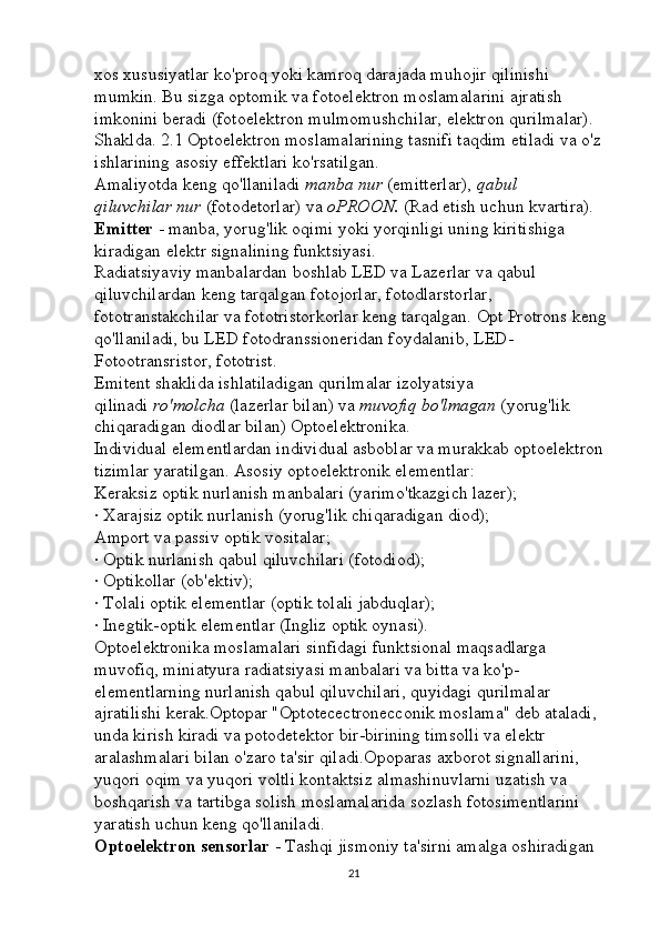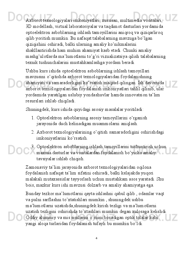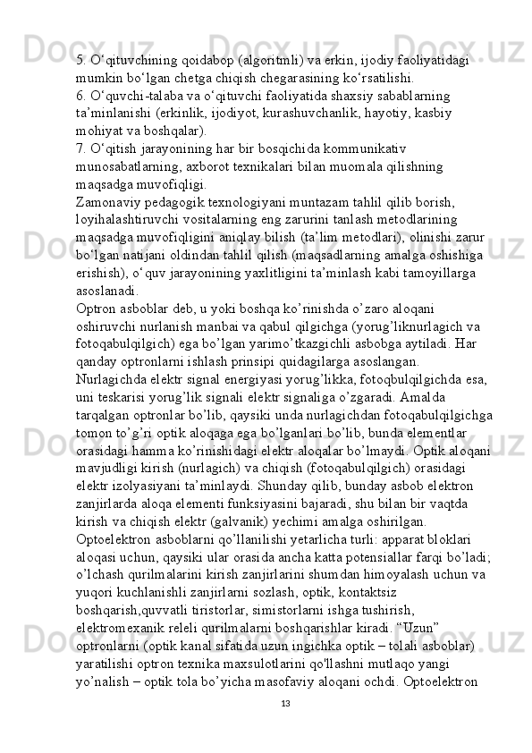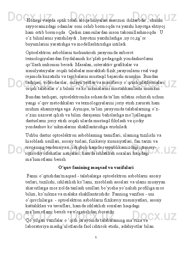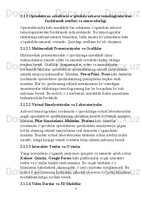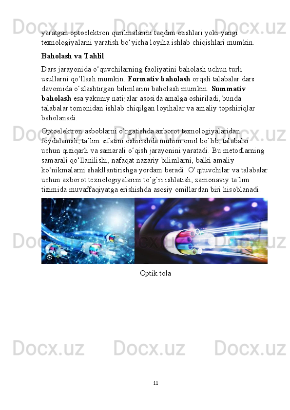 Optoelektron asboblarni ishlash tamoyillari mavzusini yoritishda axborot texnalogiyalaridan foydalanish