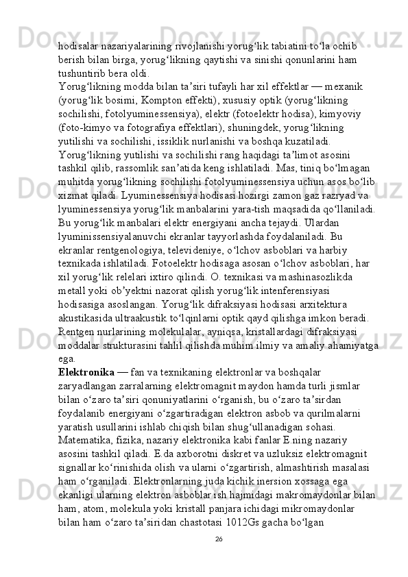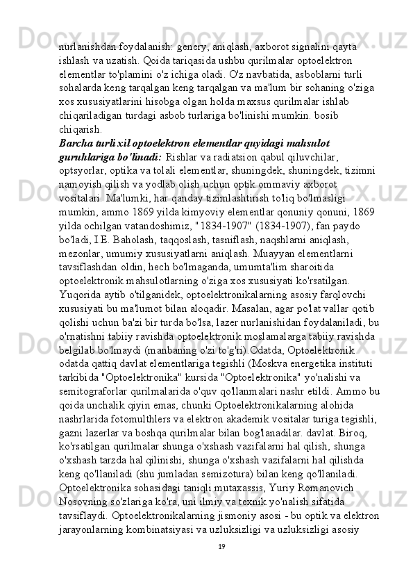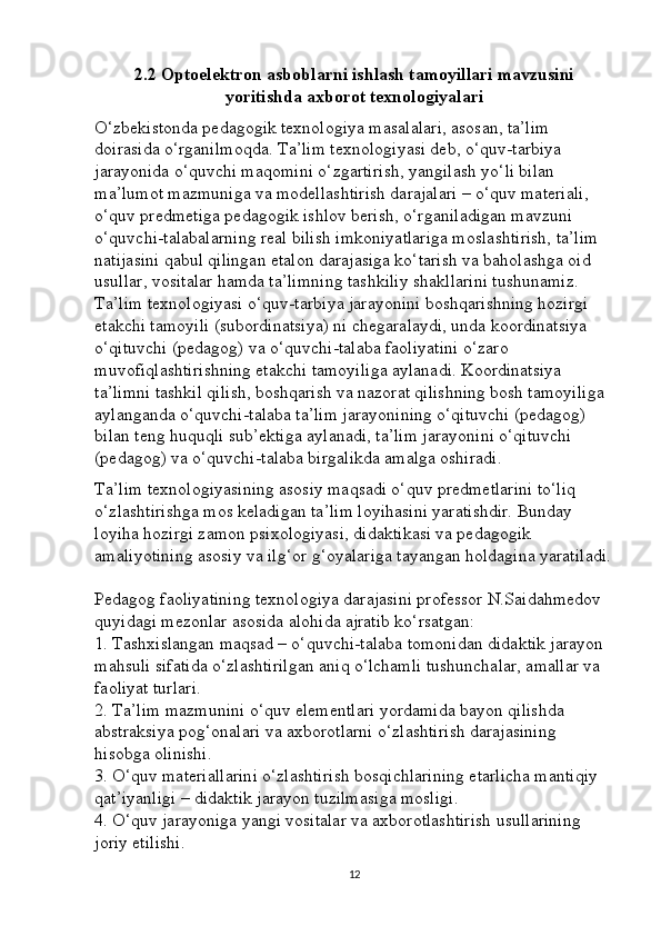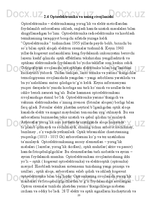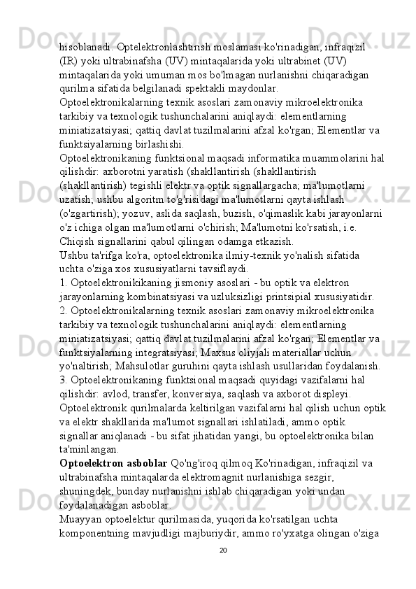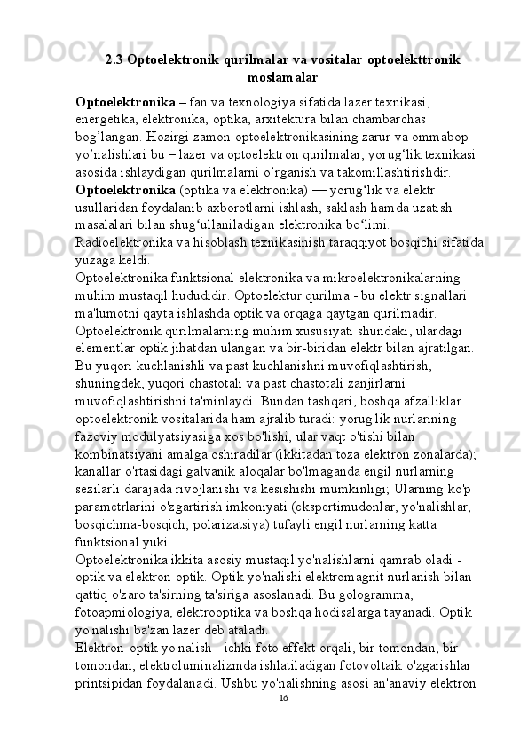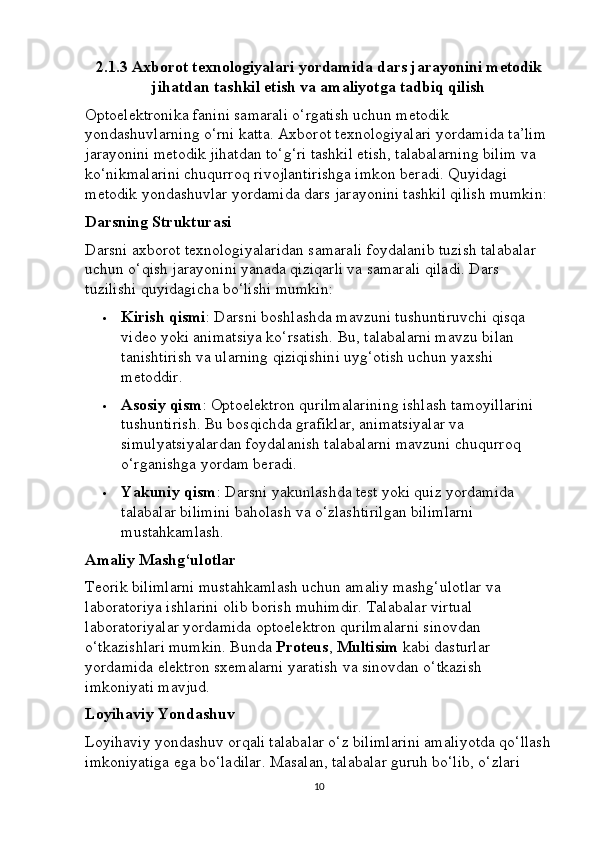 Optoelektron asboblarni ishlash tamoyillari mavzusini yoritishda axborot texnalogiyalaridan foydalanish