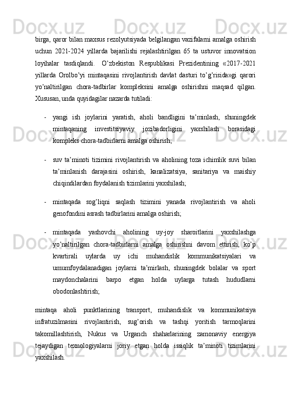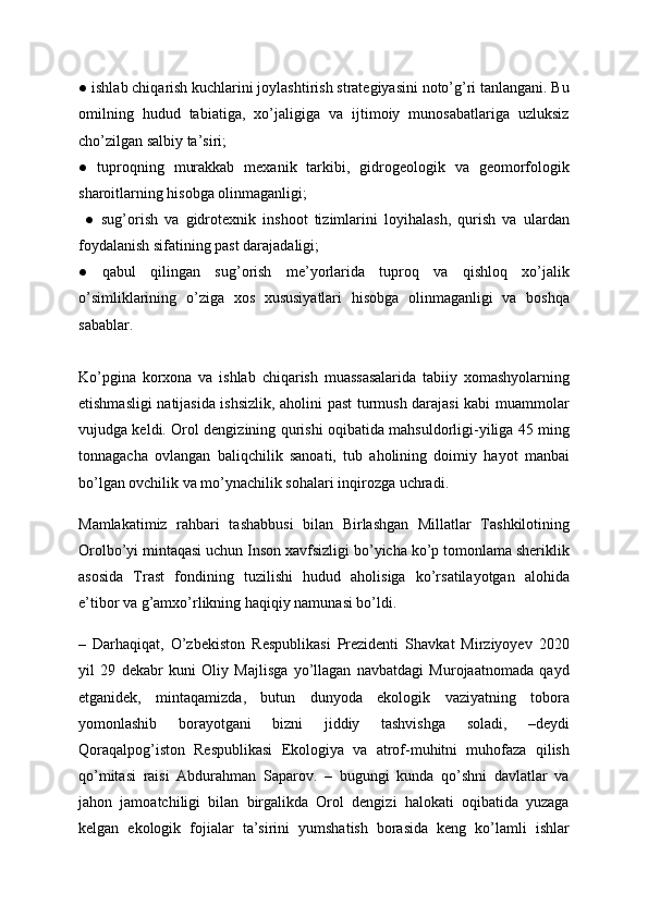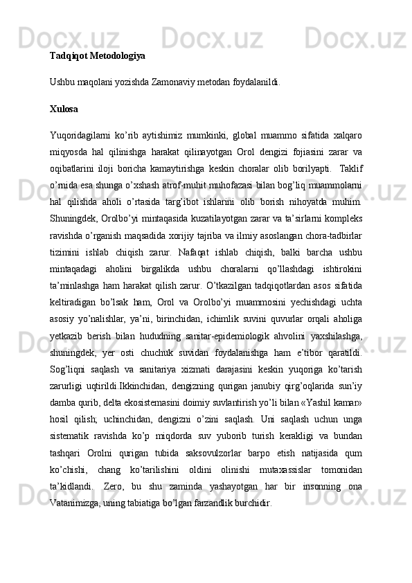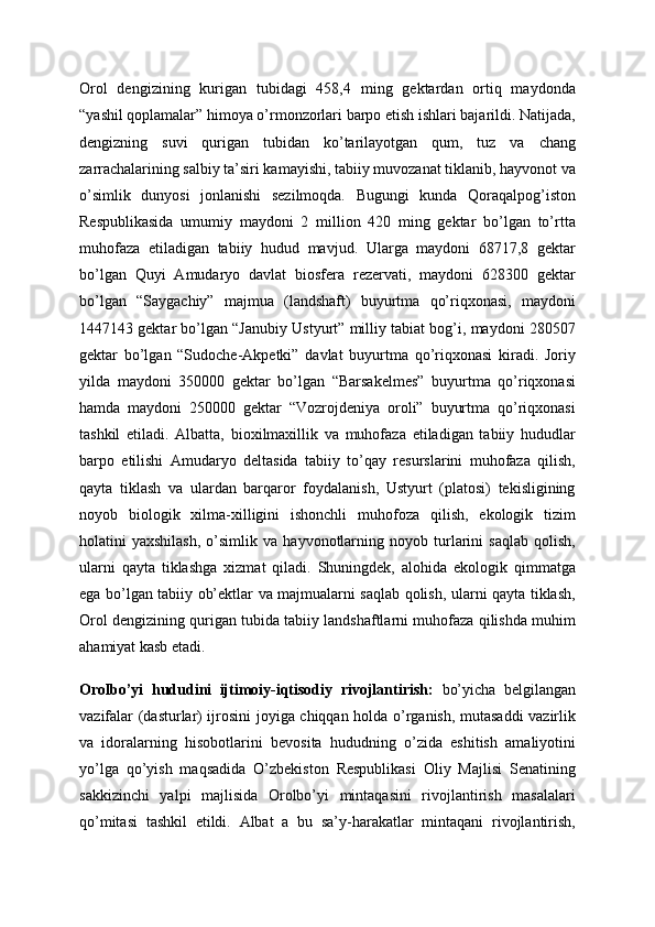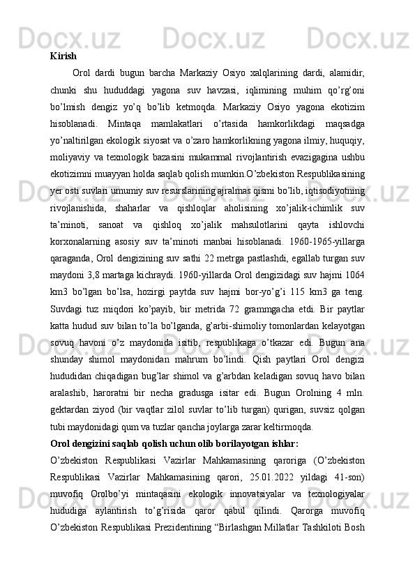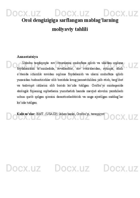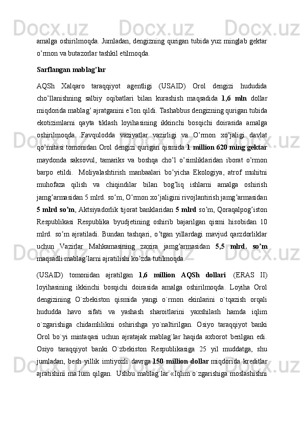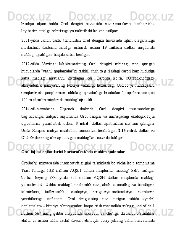 Orol dengizigiga sarflangan mablag’larning moliyaviy tahlili