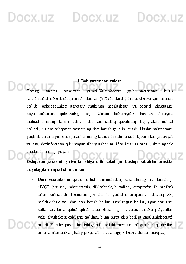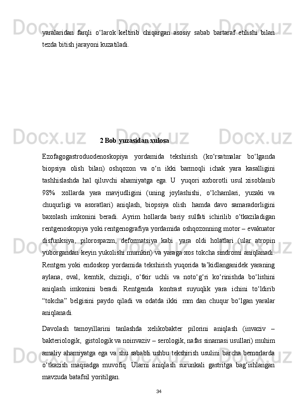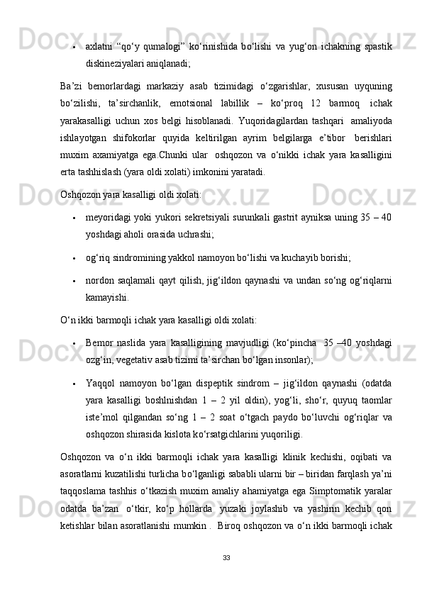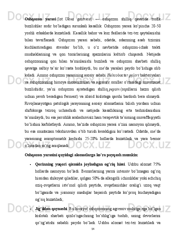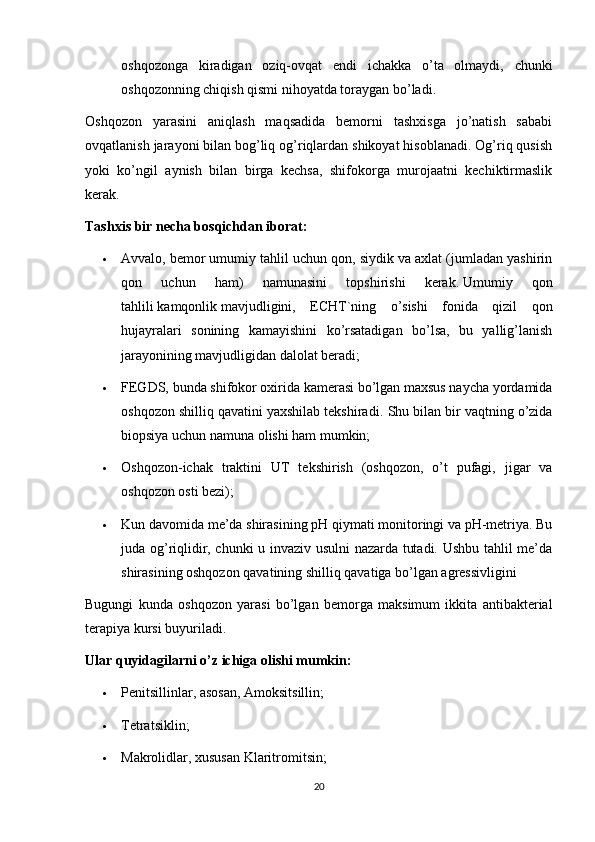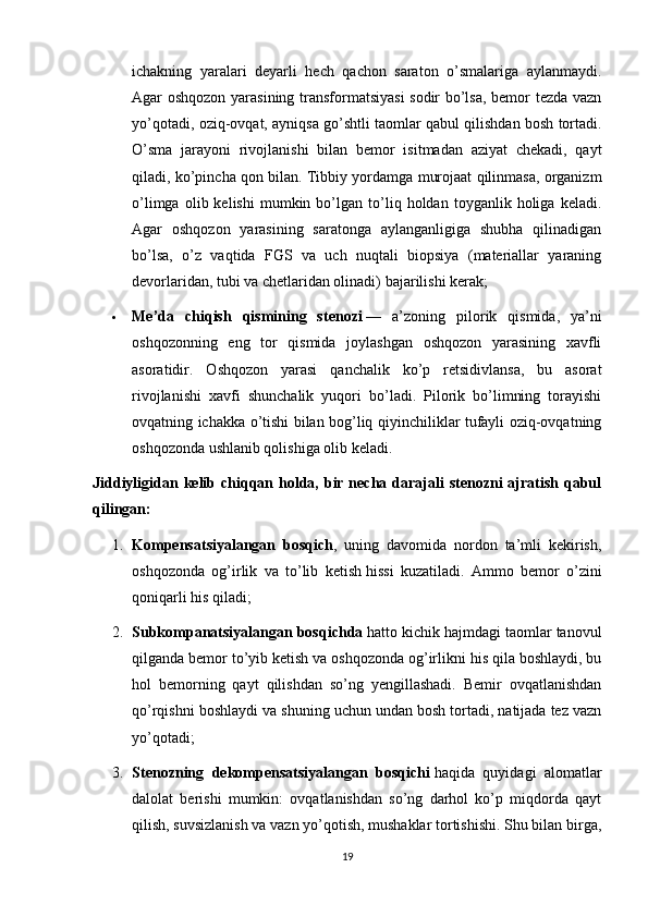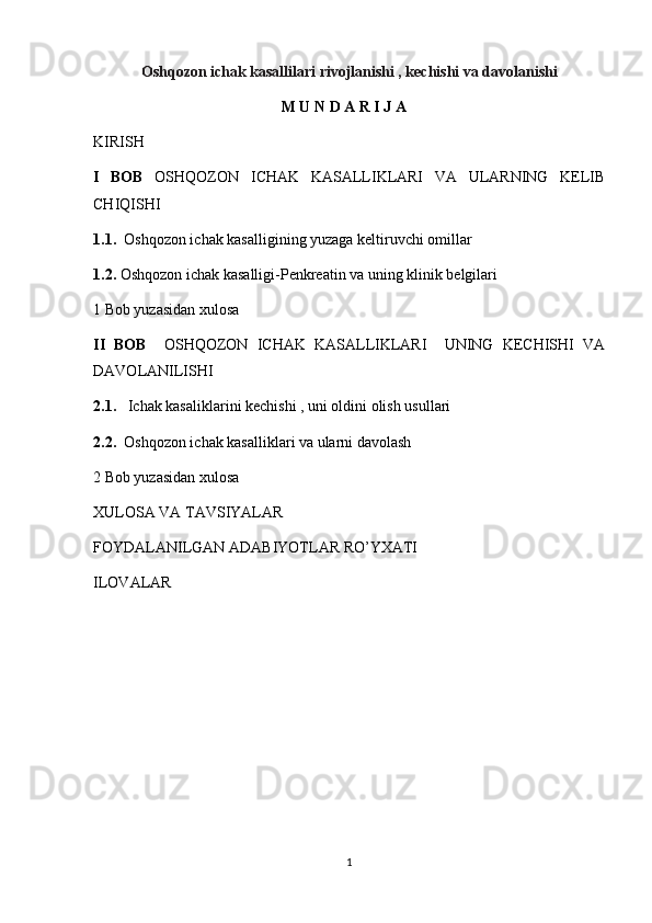 I BOB OSHQOZON ICHAK KASALLIKLARI VA ULARNING KELIB CHIQISHI