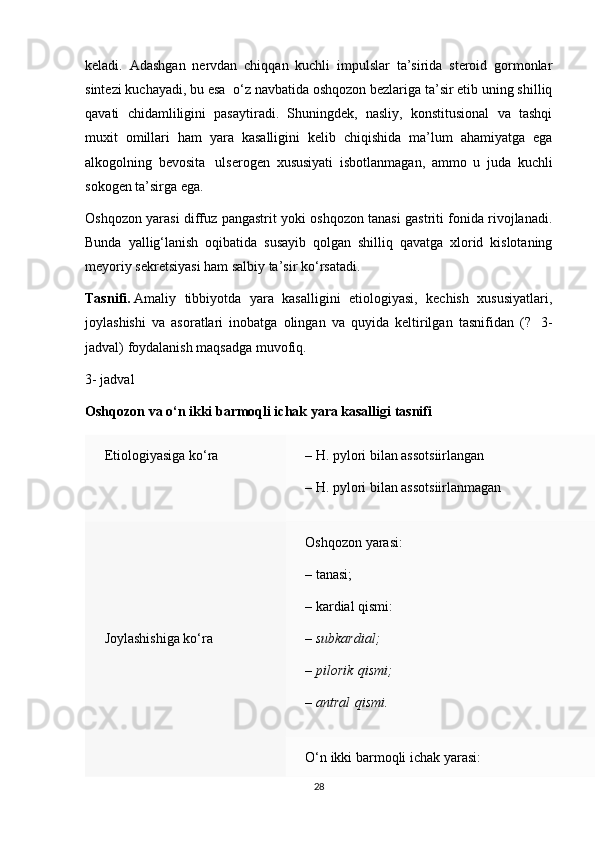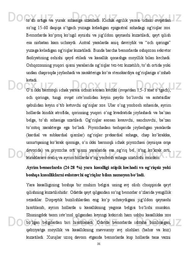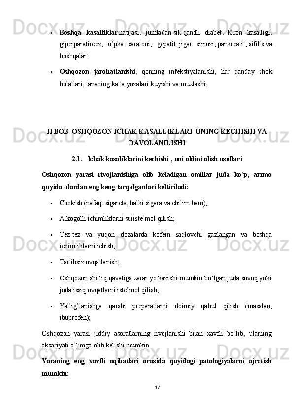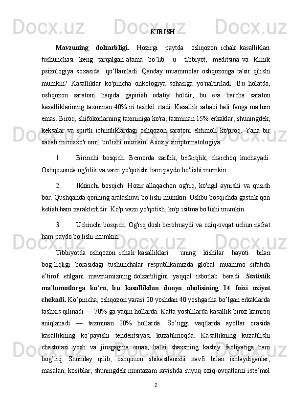 II BOB OSHQOZON ICHAK KASALLIKLARI UNING KECHISHI VA DAVOLANILISHI