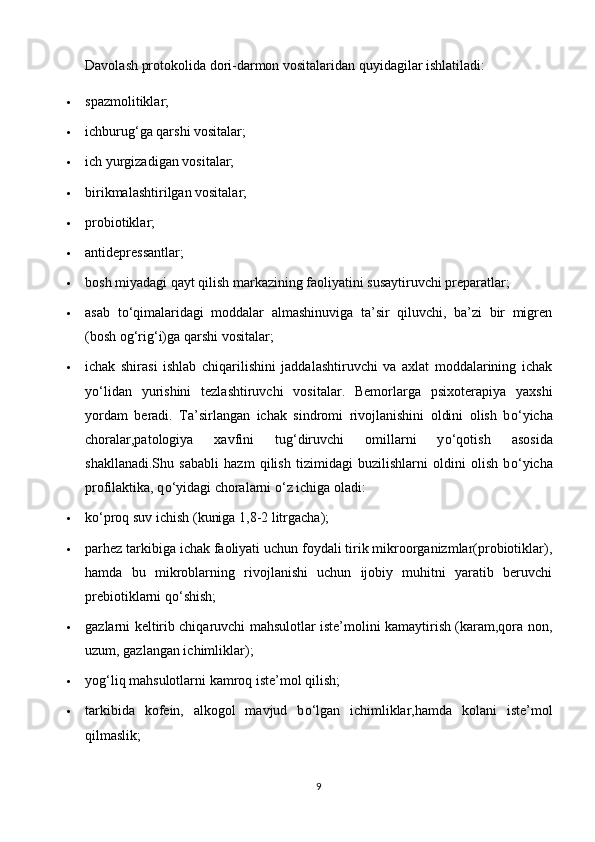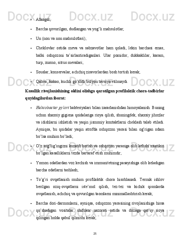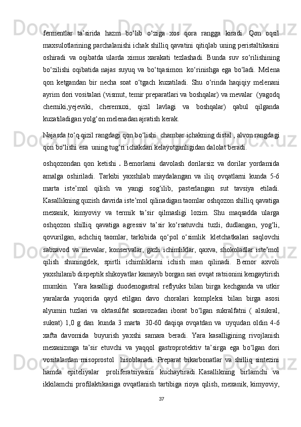 2.1. Ichak kasaliklarini kechishi , uni oldini olish usullari