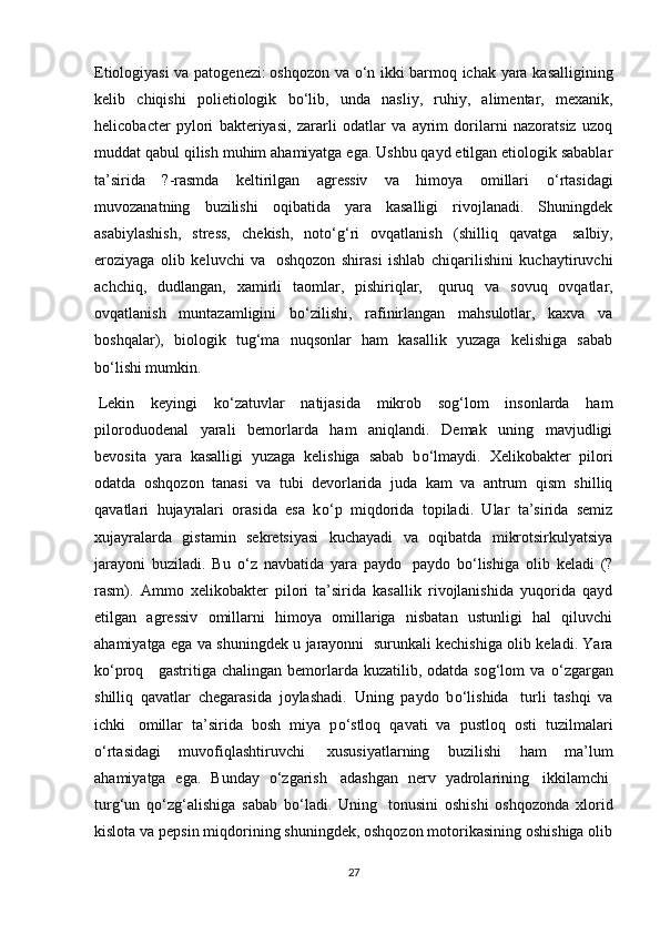 1.1. Oshqozon ichak kasalligining yuzaga keltiruvchi omillar