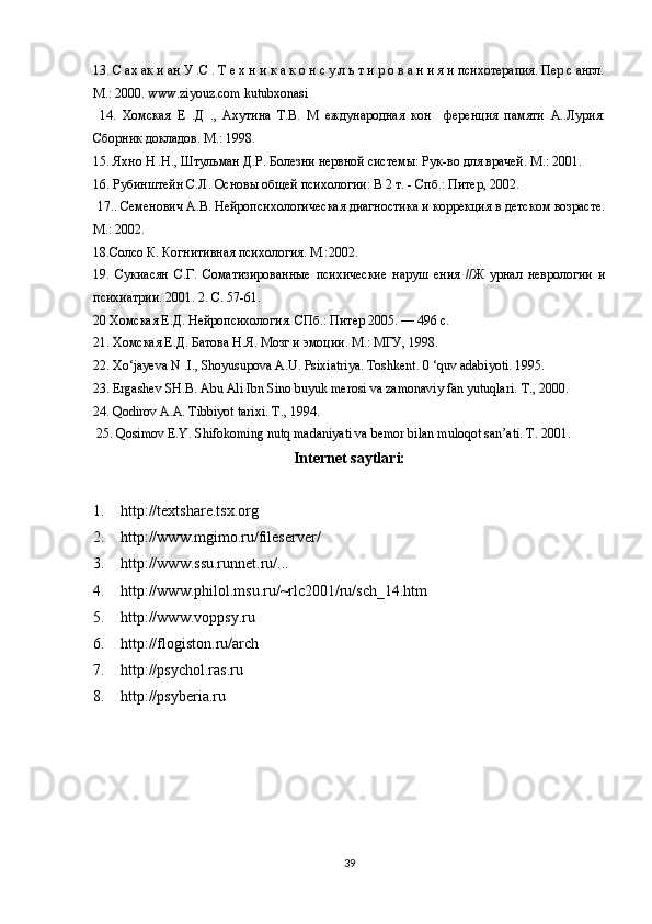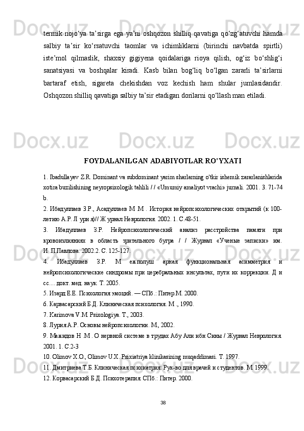 FOYDALANILGAN ADABIYOTLAR RO’YXATI