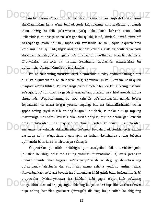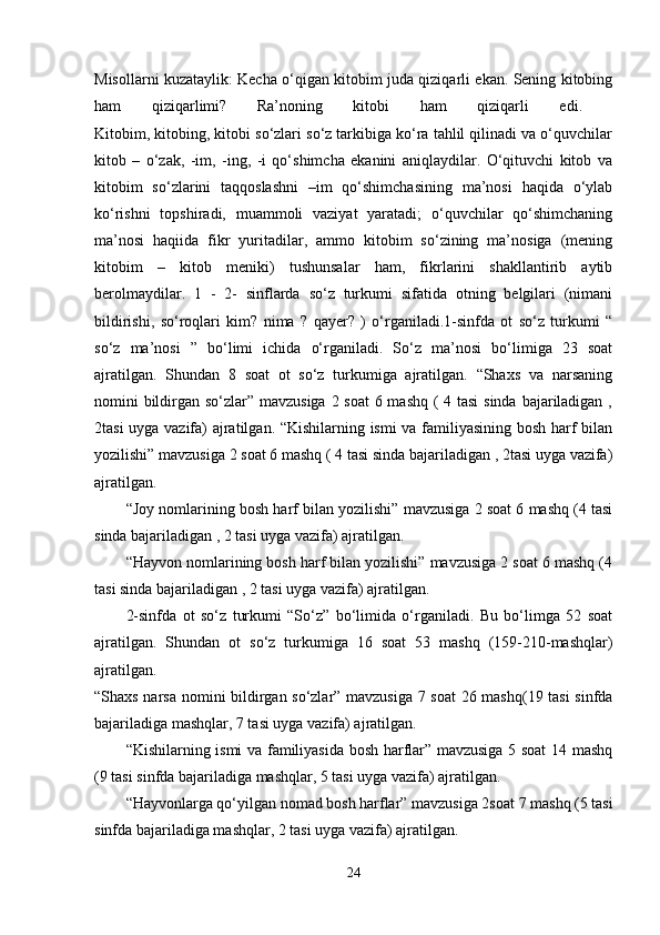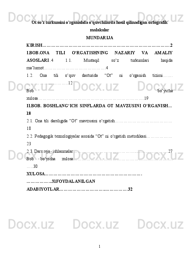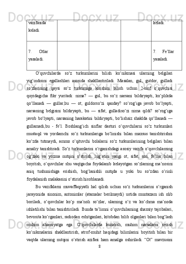 Ot so'z turkumini o'rganishda o'quvchilarda hosil qilinadigan orfografik
