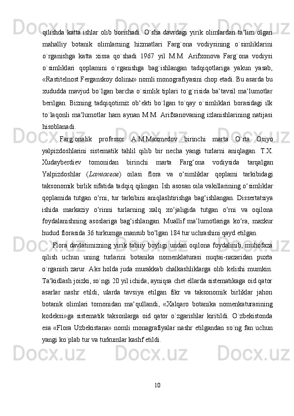 o`simlik   dunyosi   bilan   shug`ullanib,   muhim   ma‘lumotlar   to`plagan.   1976   yilda