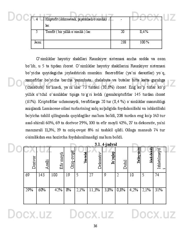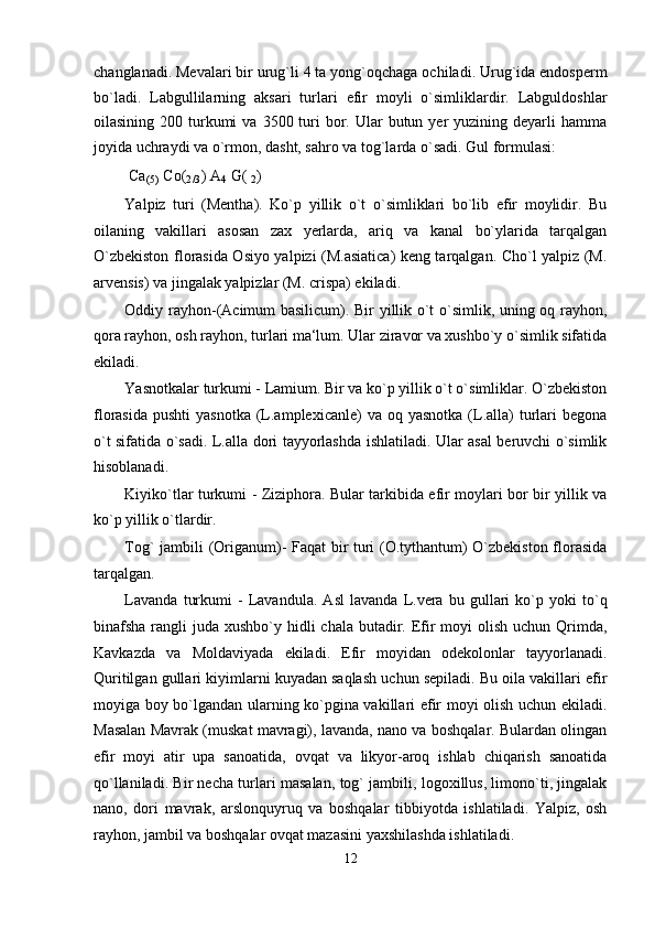 32 to‘pgul   hosil   qiladi.   Kosachasi   binafsha,   tuksiz,   uch   burchakli,   uchli   kipriksimon