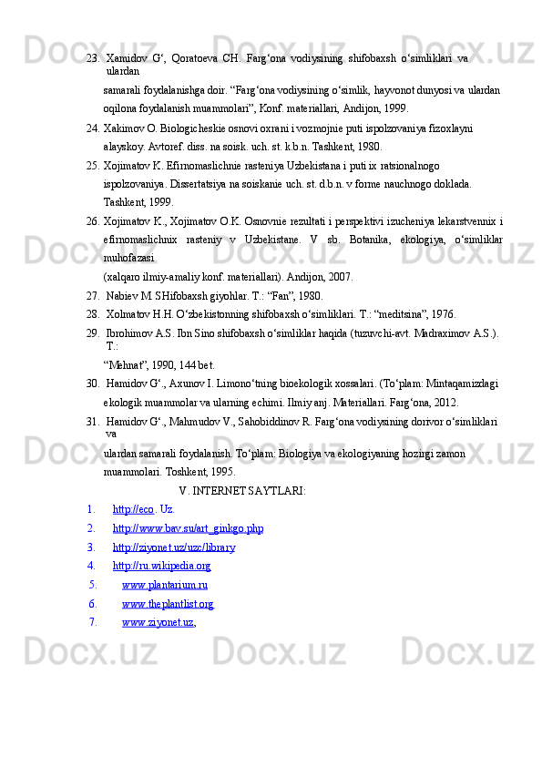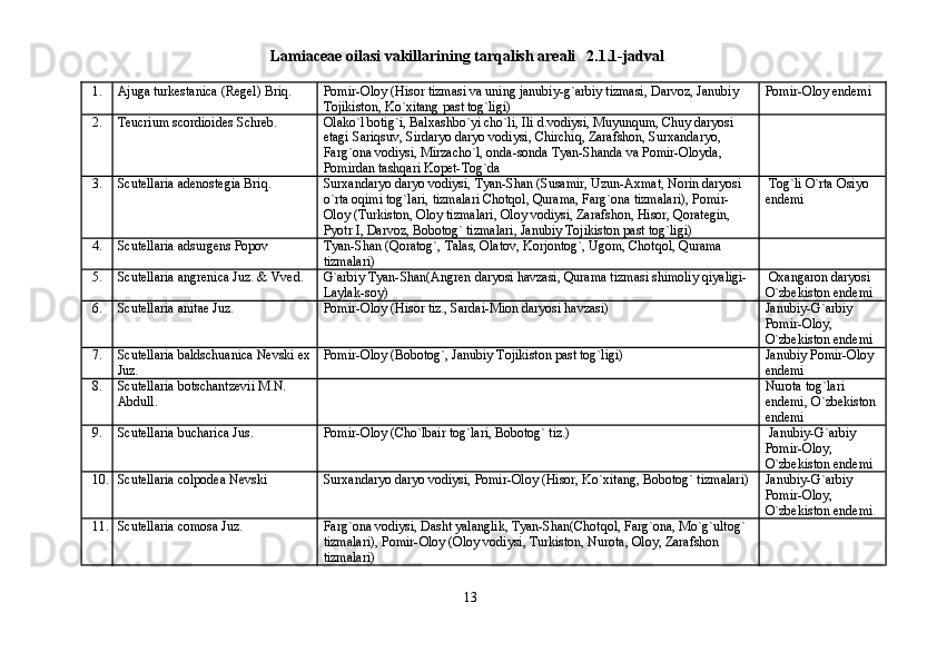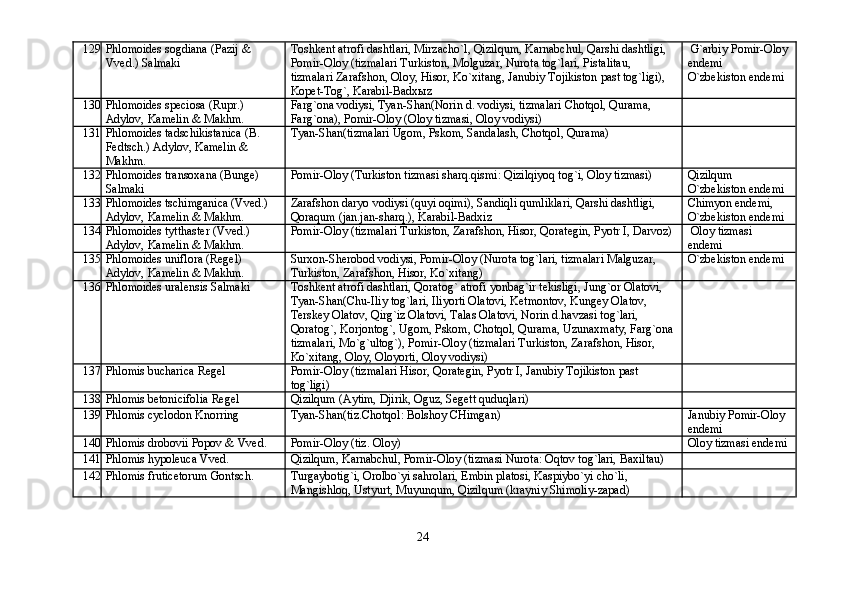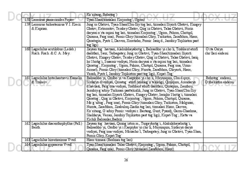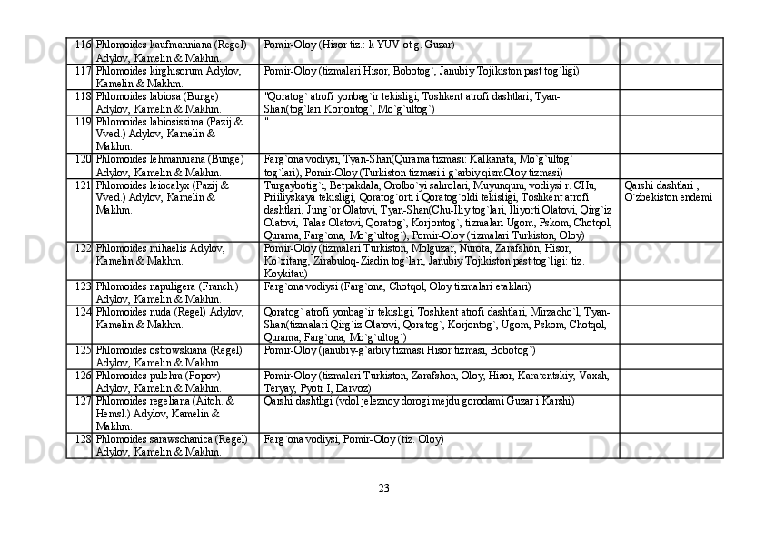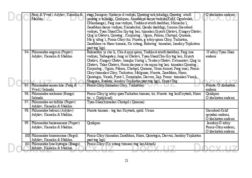 Nabiev & Tulyag. Chotqol, Kaz ы kurt, Qurama, Mo`g`ultog`), Pomir-Oloy (tizmalari Turkiston, O`zbekiston endemi