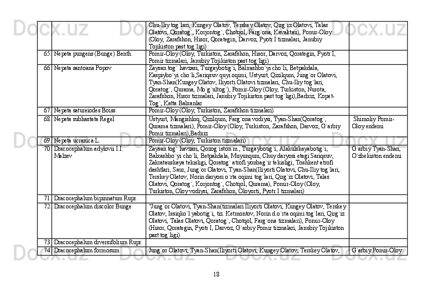 80. Dracocephalum nuratavicum Tyan-Shan(Talas Olatovi, Ugom, Chotqol, Qurama tizmalari), Pomir-Oloy Nurota tog`lari,