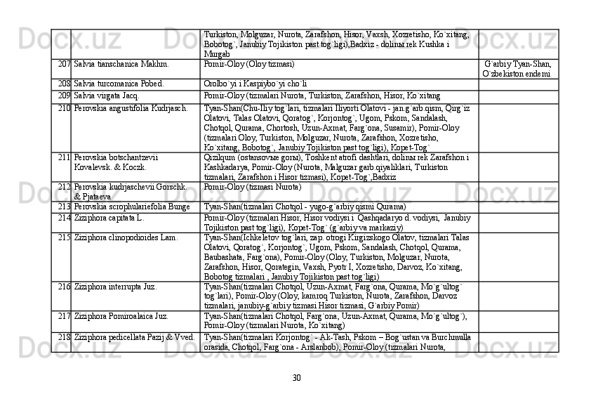 230 Thymus dmitrievae Gamajun. Qarshi dashtligi, Pomir-Oloy (tizmalari Hisor, Bobotog`, Janubiy Tojikiston
