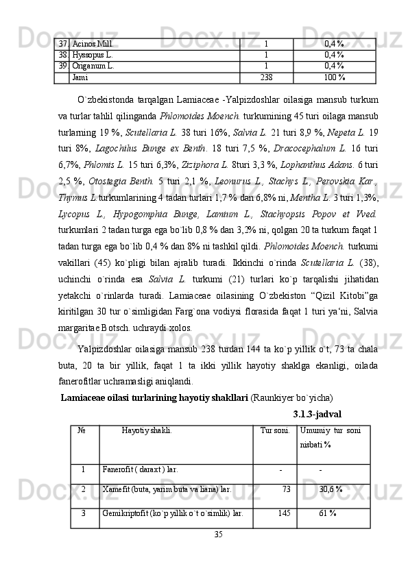 Lallemantia Fisch. et C.A. Mey.	1	0,4 %