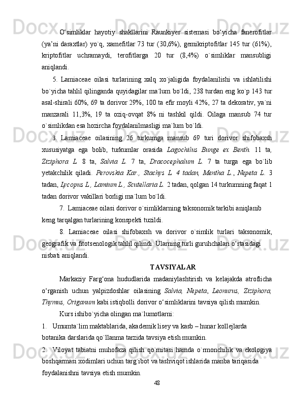 o`simlik  turlarini  qayta ishladi. Ular  orasida yangi  tur  va turkumlar  ham  bor  edi.