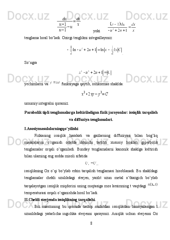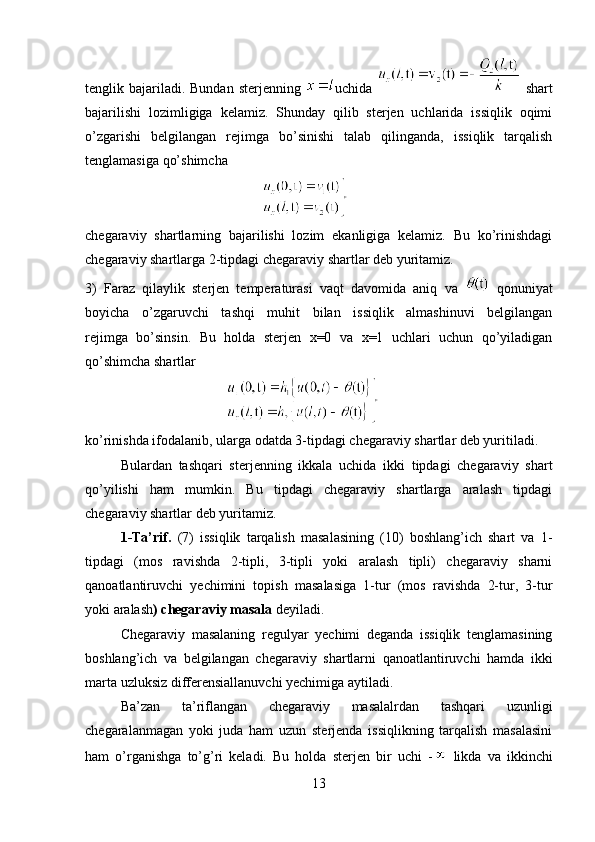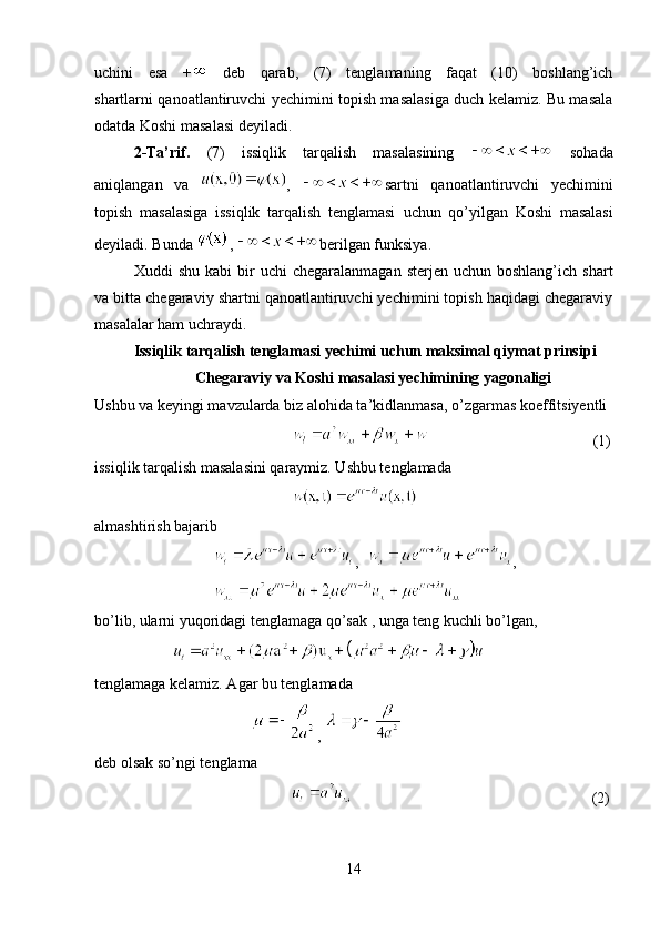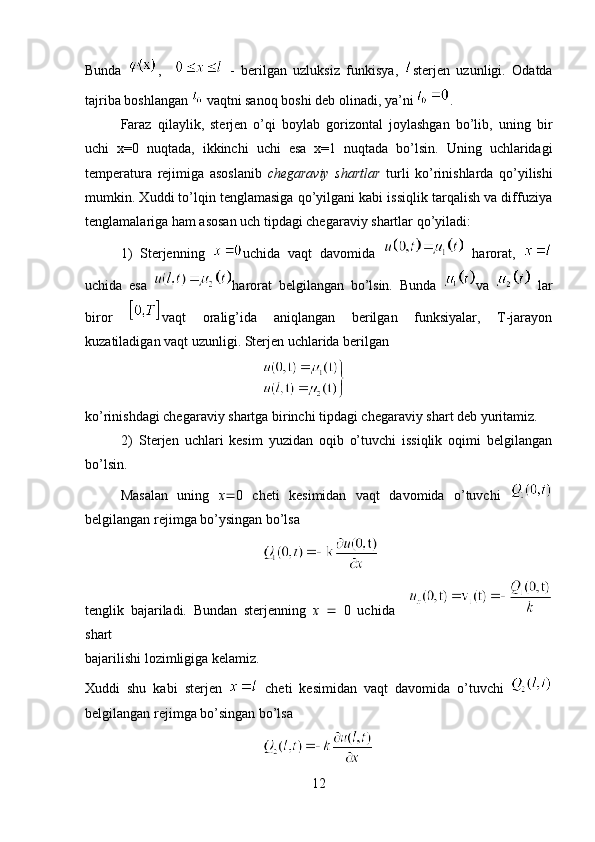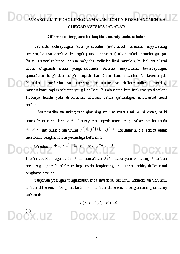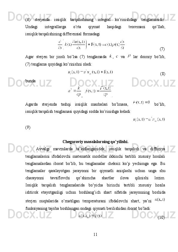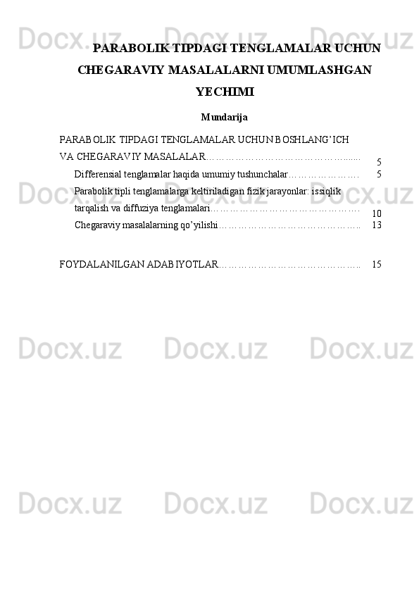 Parabolik tipdagi tenglamalar uchun chegaraviy masalalarni umumlashgan yechimi