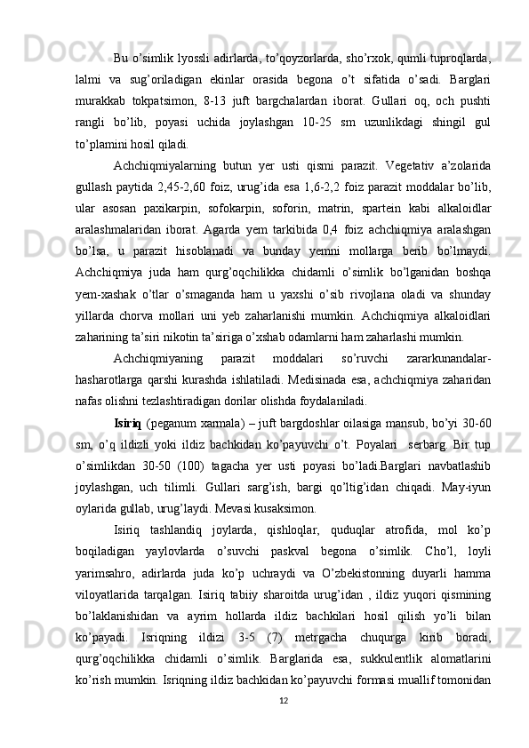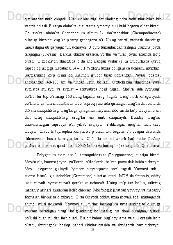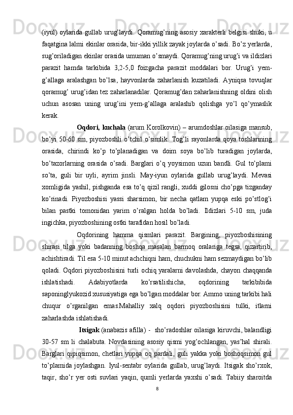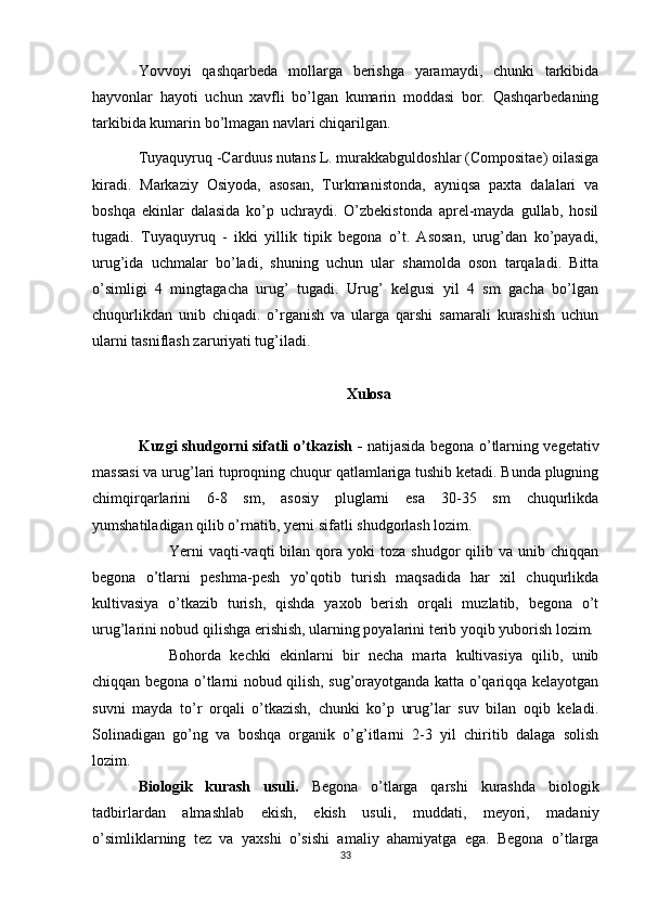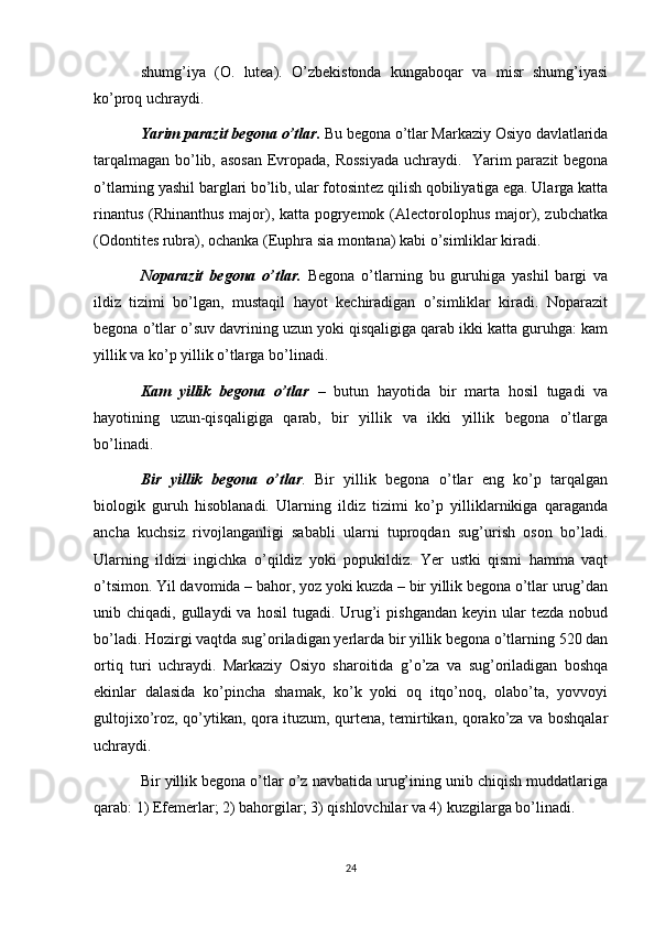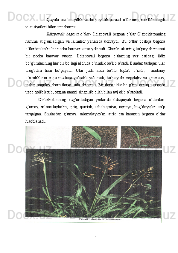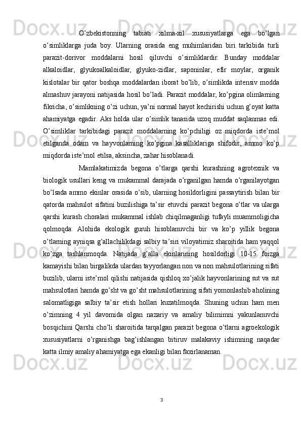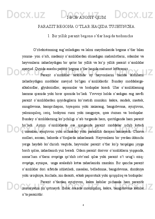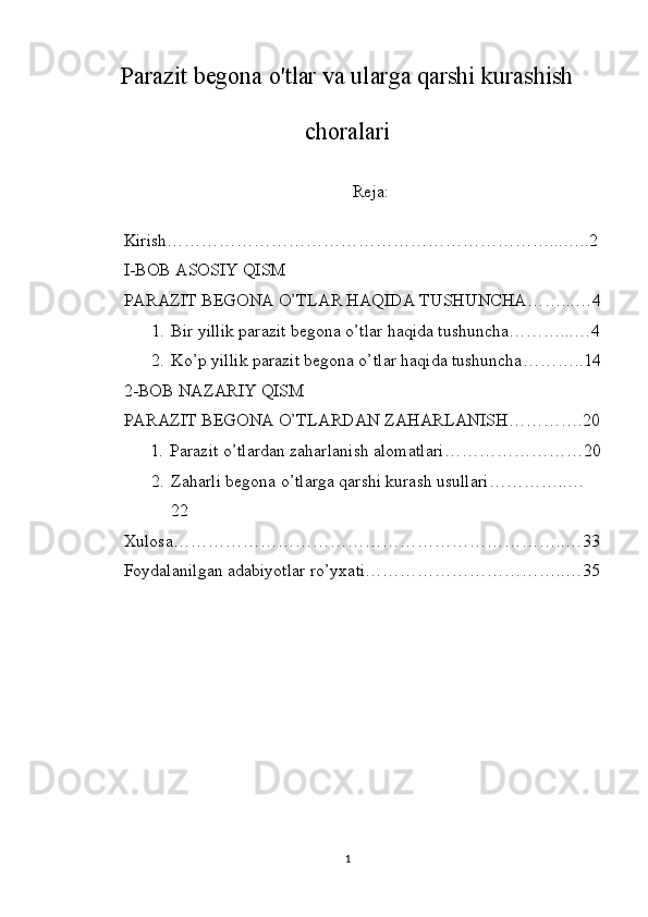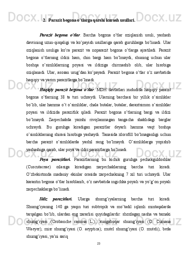 Parazit begona o'tlar va ularga qarshi kurashish choralari