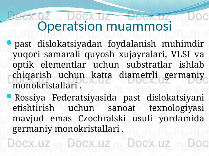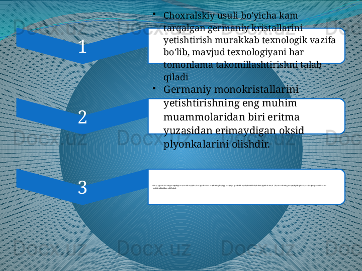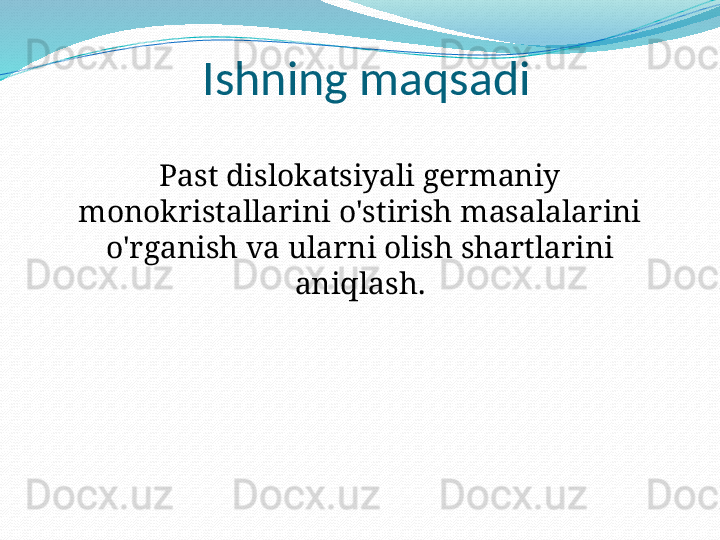 Past dislokatsiyali germaniy monokristallarini o'stirish