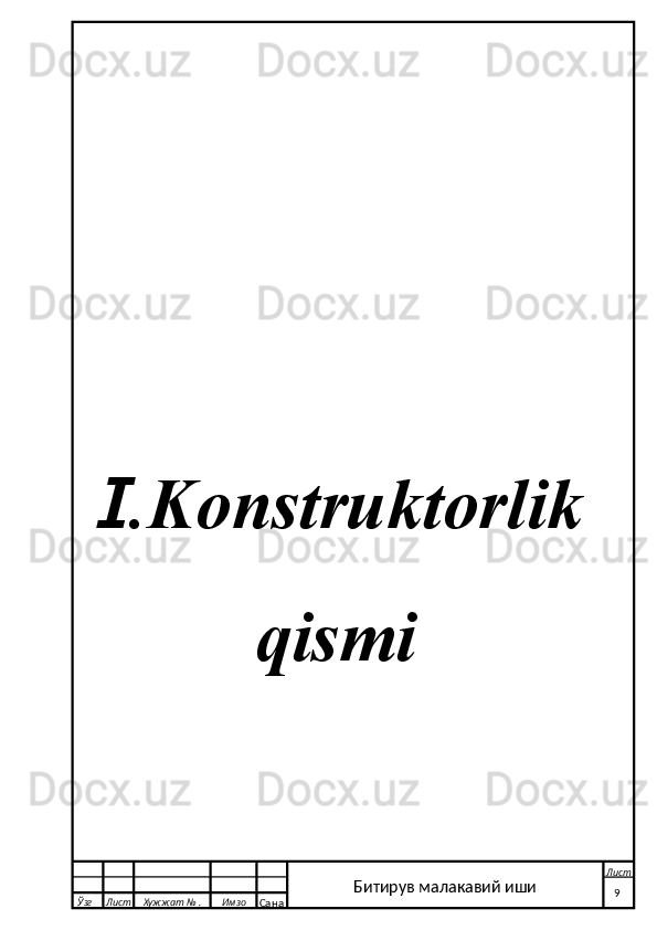 | Ⅰ. Konstruktorlik qismi………………………………………………………….9 | |