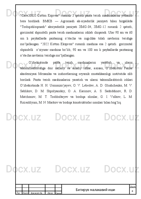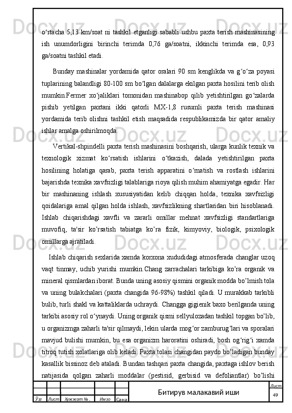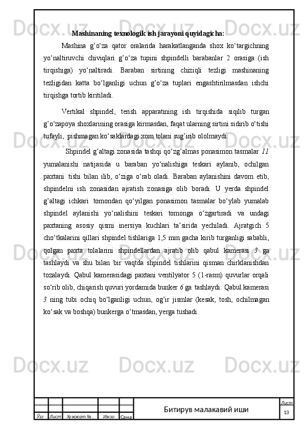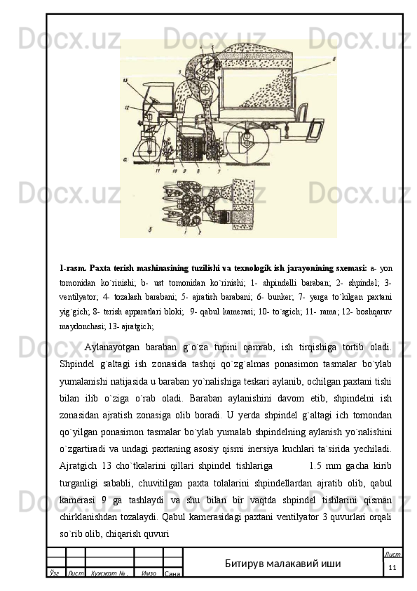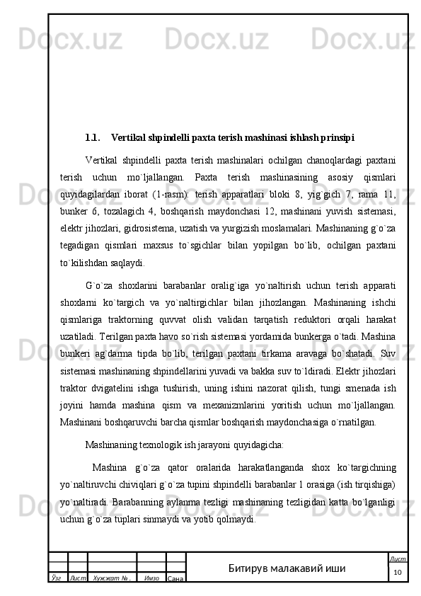 | 1.1.Vertikal-shpindelli paxta terish mashinasi ishlash prinsipi………………..10 | |