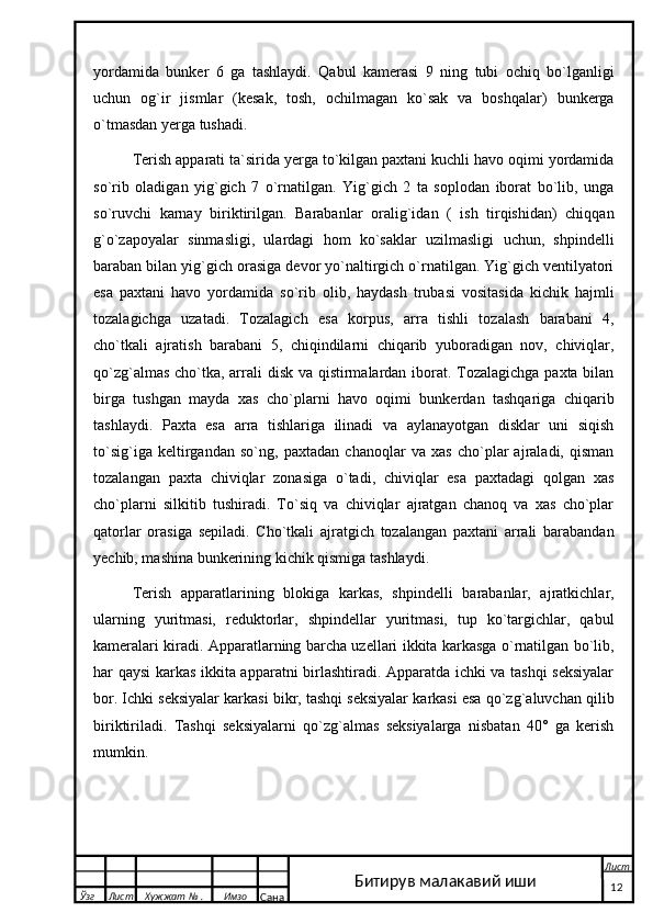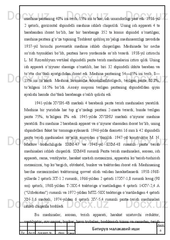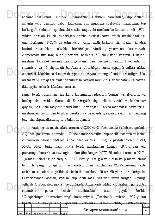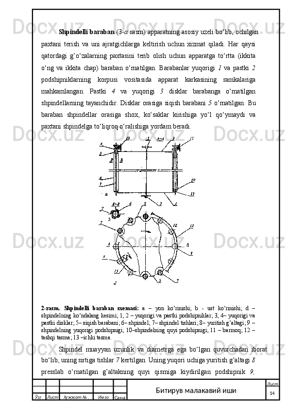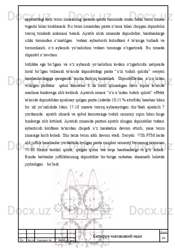 | 1.2. Vertikal-shpindelli paxta terish apparatlarining asosiy kamchiliklari……..16 | |