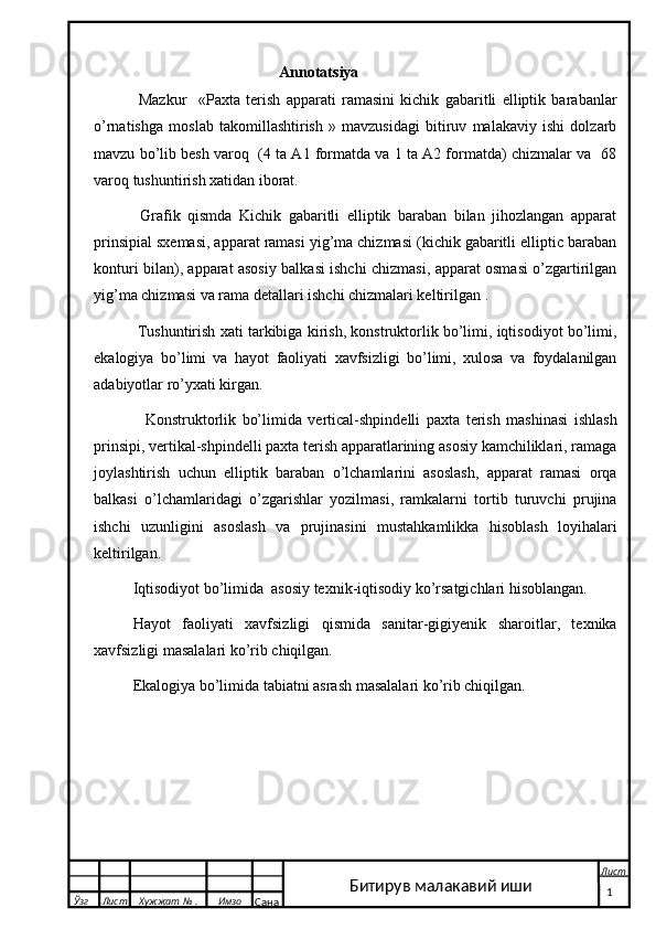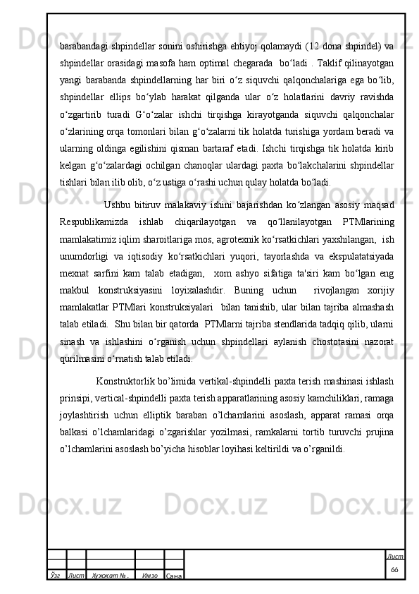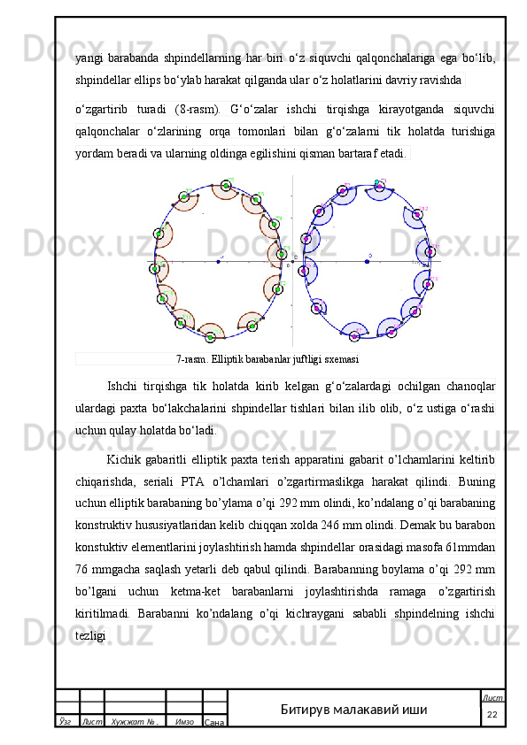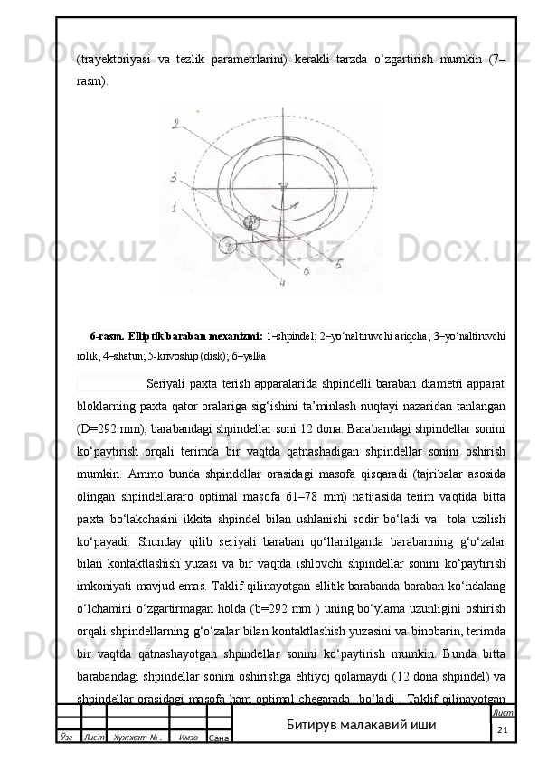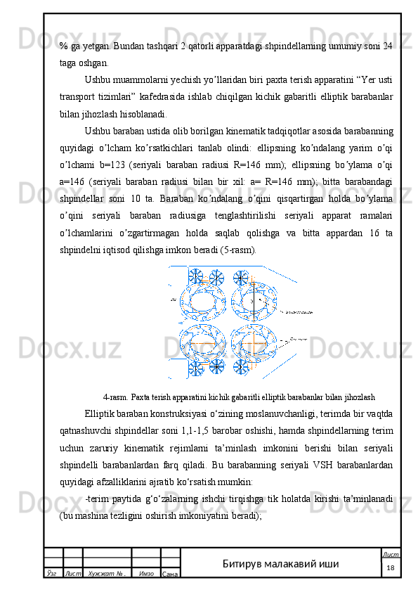 | 1.3. Ramaga joylashtirish uchun elliptik baraban o’lchamlarini asoslash……..17 | |