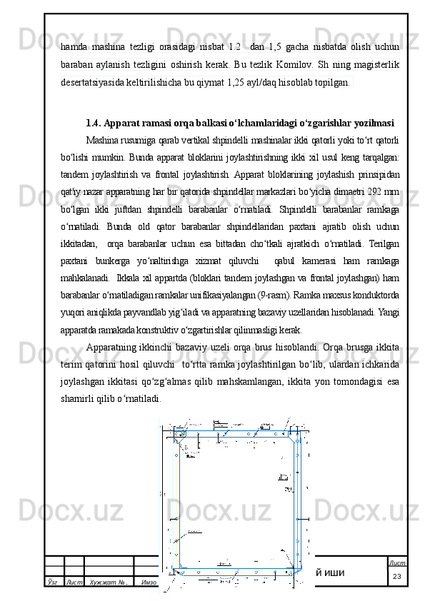 | 1.4. Apparat ramasi orqa balkasi o’lchamlaridagi o’zgarishlar yozilmasi……..23 | |