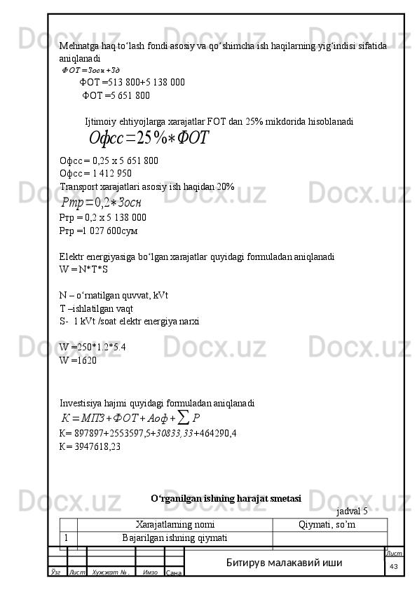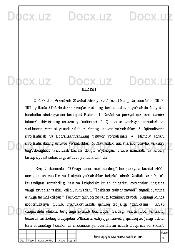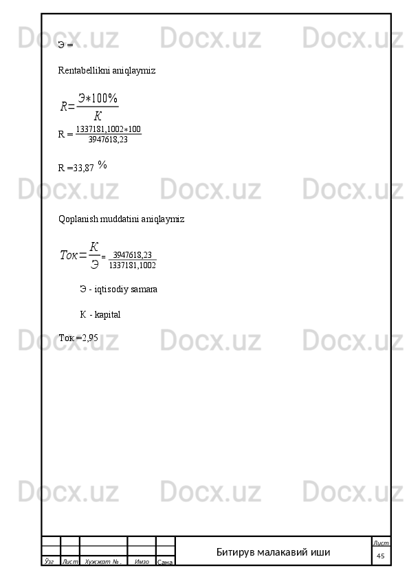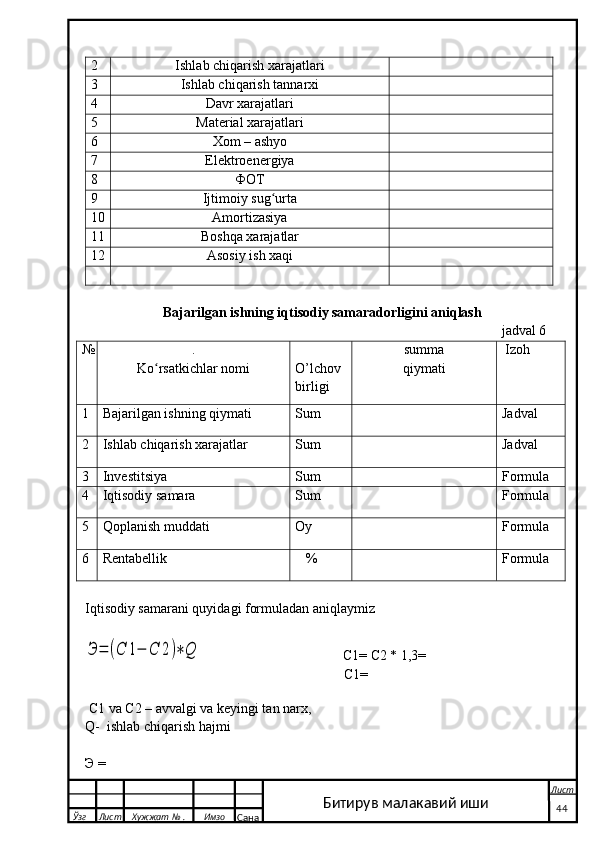 | Ⅱ. Iqtisodiyot qismi……………………………………………………………..39 | |