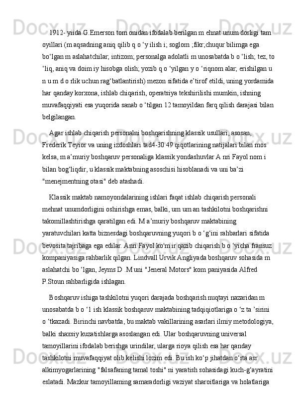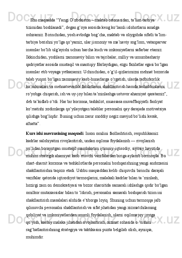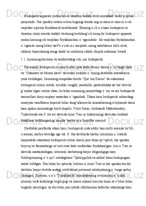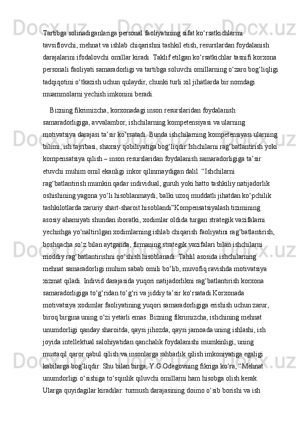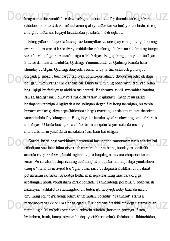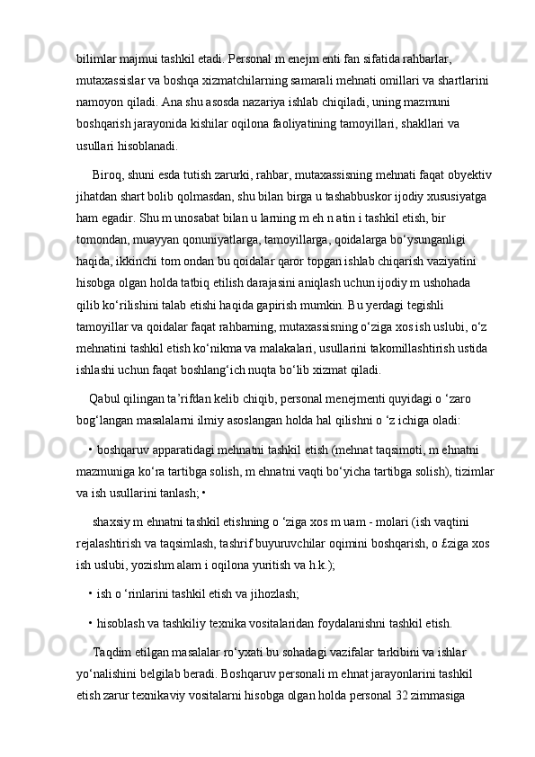 Personalni boshqarishda ishchi kuchi sifatini oshirish