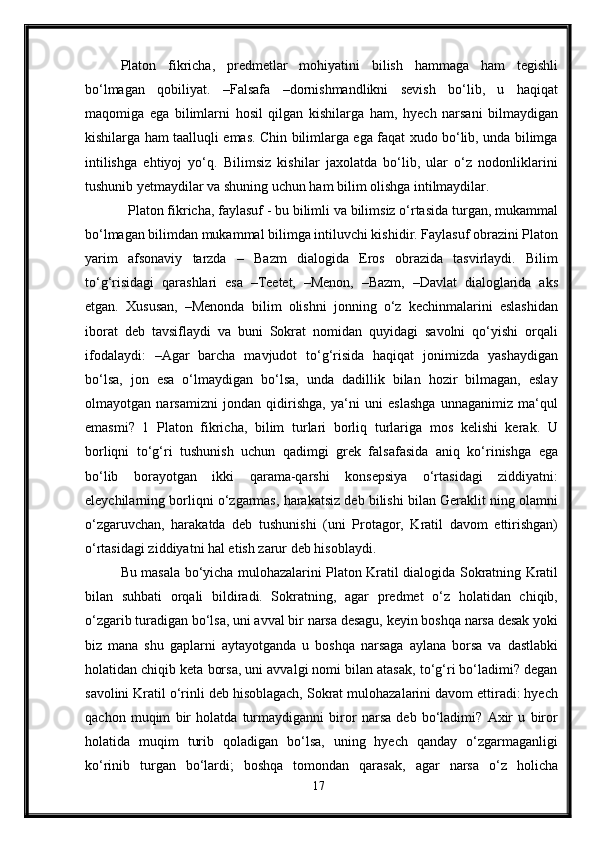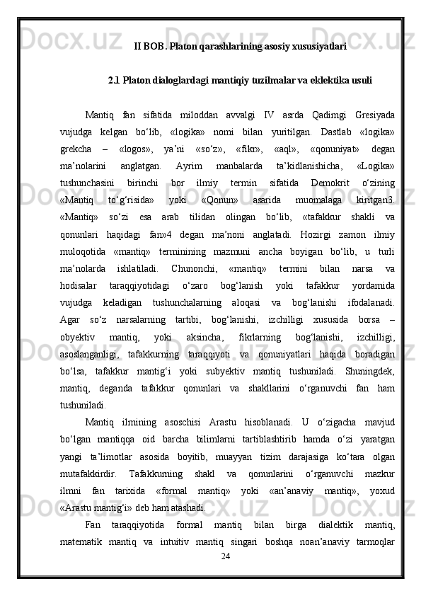 II BOB. Platon qarashlarining asosiy xususiyatlari 24