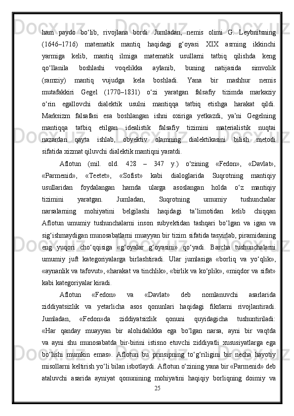 2.1 Platon dialoglardagi mantiqiy tuzilmalar va eklektika usuli 24