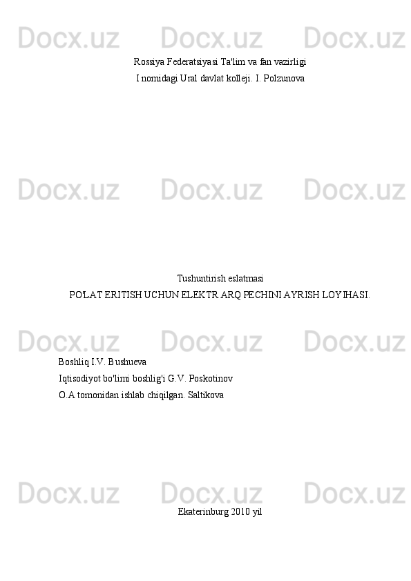 PO'LAT ERITISH UCHUN ELEKTR ARQ PECHINI AYRISH LOYIHASI.