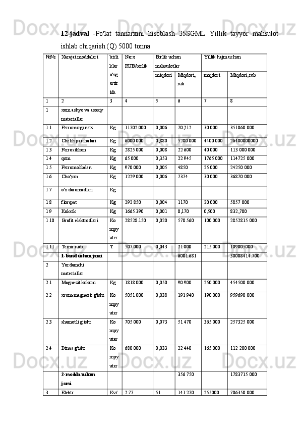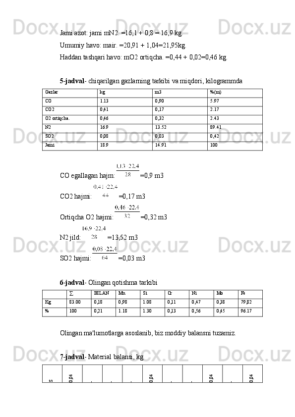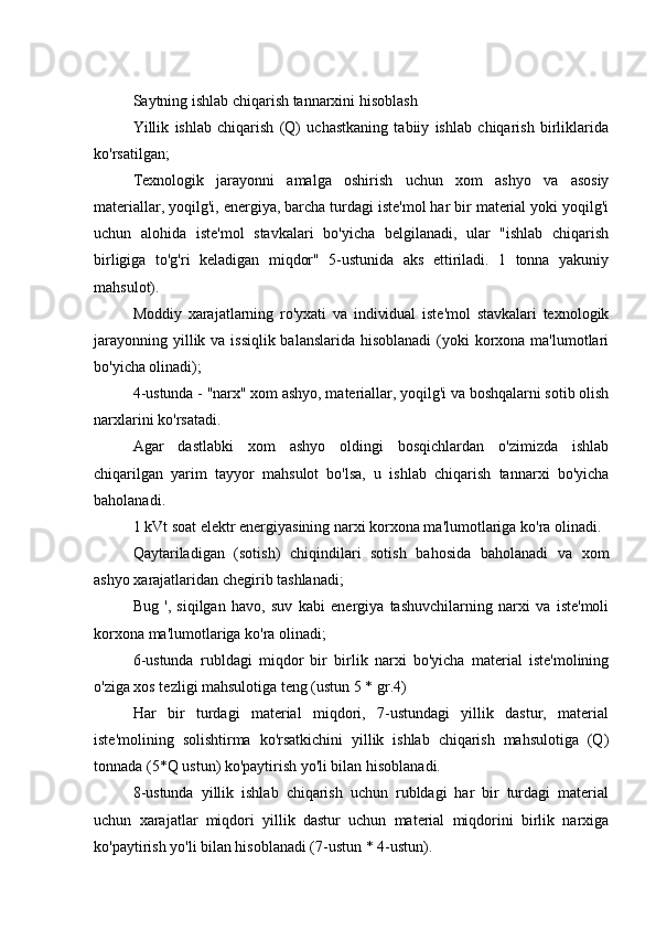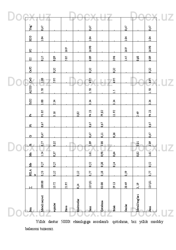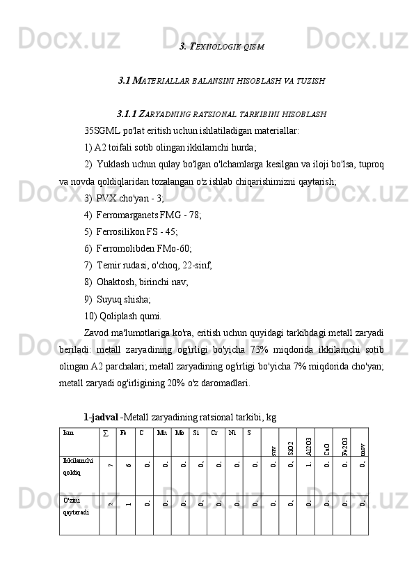 3.1 Materiallar balansini hisoblash va tuzish