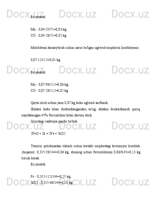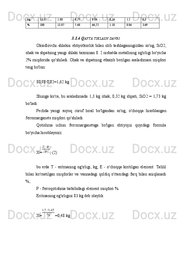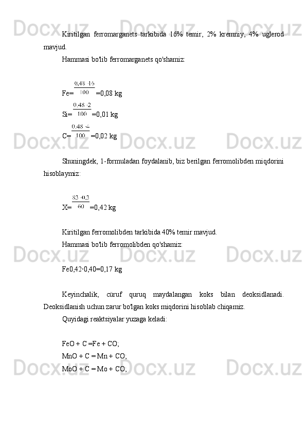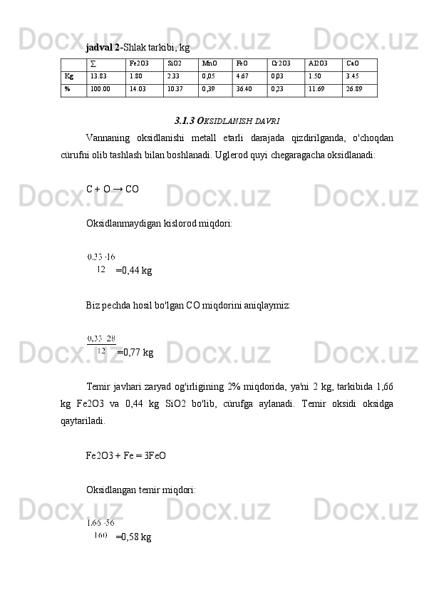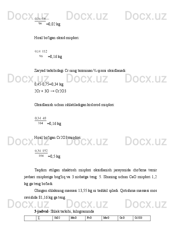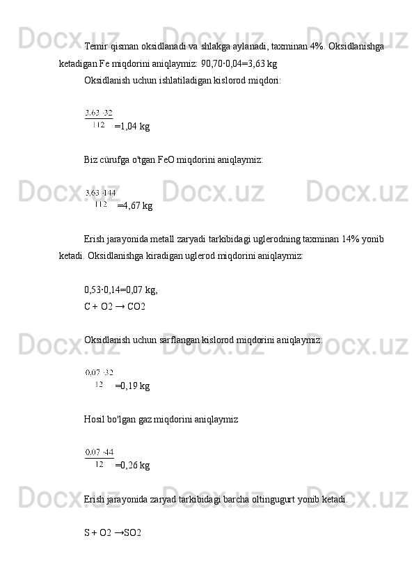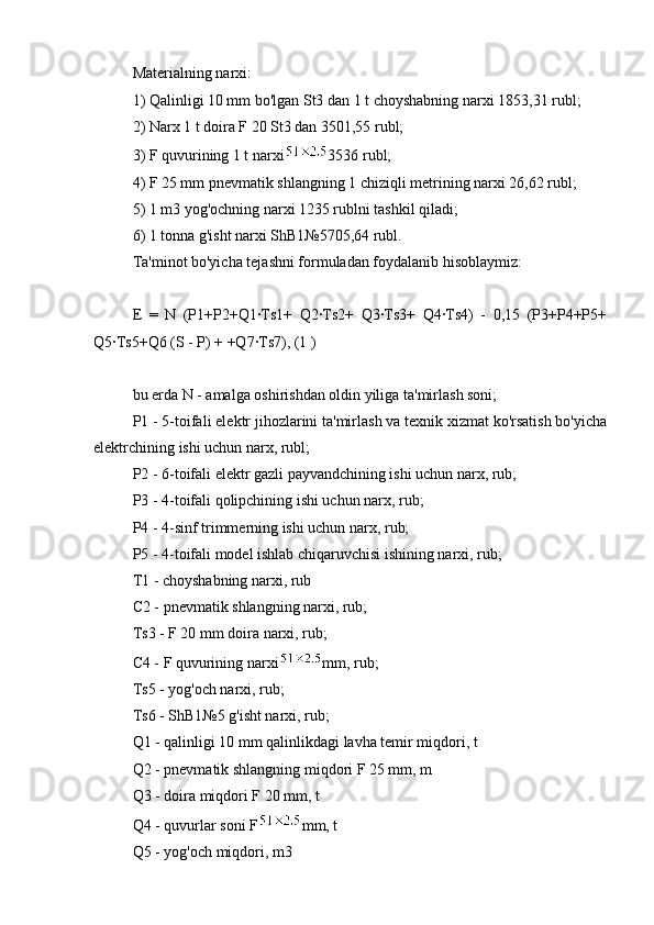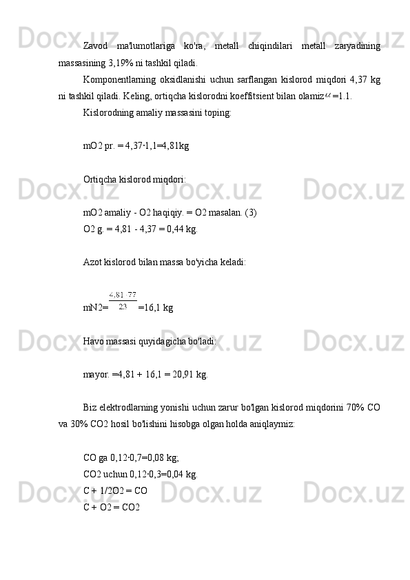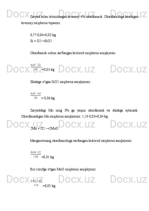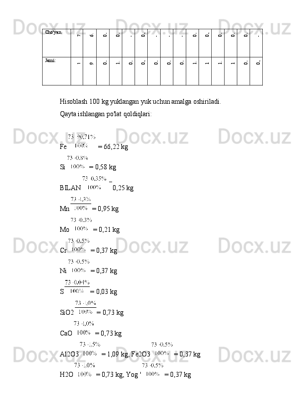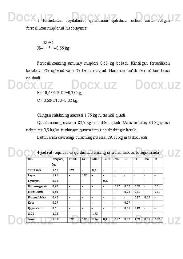 3.1.1 Zaryadning ratsional tarkibini hisoblash